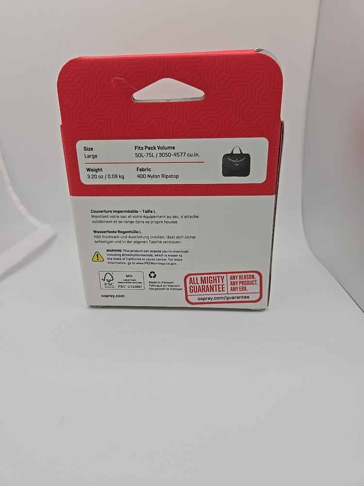 1. This raincover is a lifesaver for backpacking trips! The lightweight nylon keeps heavy rain out without adding bulk, and the insect-repellent treatment is a great bonus. Fits snugly over my 65L pack, and the Shadow Grey looks sleek. Osprey’s quality shines—no leaks even in downpours. A must-have for wet-weather adventures!