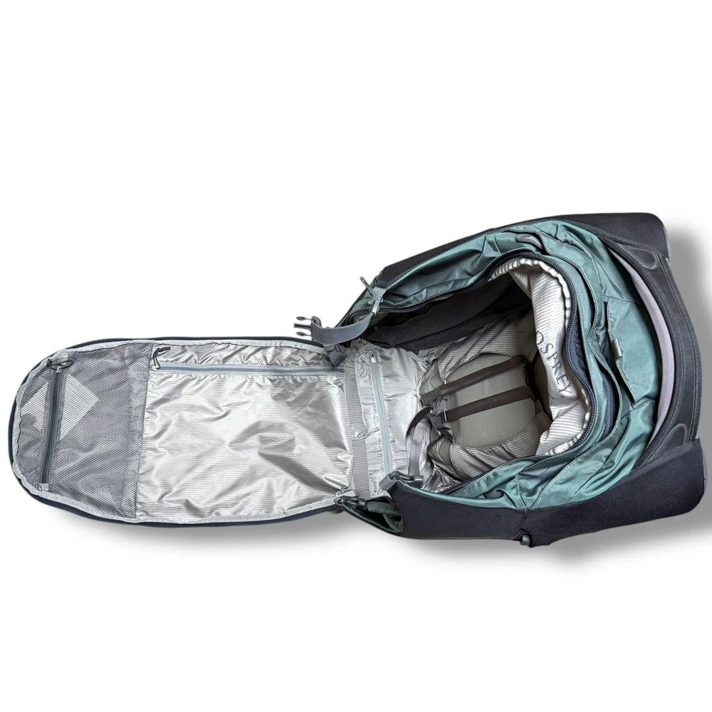1. This Osprey wheeled backpack is a game-changer for travel! The 80L capacity fits everything I need, and the wheels make hauling it a breeze. Even though it's used, it's in great shape—just some minor wear that doesn’t affect performance. Perfect for long trips, and the discontinued model still outshines many new bags. Super sturdy and practical—highly recommend!