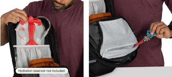 • Lightweight pack features a breathable, close-to-body AirScape back panel and continuous-wrap harness and hipbelt that moves with you • Microadjustable sliding yoke offers easier and more accurate fine-tuning • Trekking pole, ice axe and bike helmet attachment points make this a truly multisport pack • Dual-zippered panel access to main compartment • Internal zippered mesh pocket with key clip • Tuck-away ice axe attachment with bungee tie-off • Stow-on-the-Go trekking pole attachment • Top panel zippered slash pocket • LidLock bike helmet attachment • Lower side compression straps • Side stretch-mesh pockets • Internal hydration reservoir sleeve (reservoir not included) • Easy-access, expandable stretch-mesh harness pocket • Dual-zippered fabric hipbelt pockets • Blinker light attachment • Large stretch-mesh front panel pocket • Material(s) : bluesign-approved, 100% recycled 100-denier high-tenacity nylon with dobby check ripstop/durable water repellent (DWR) treatment made without PFAS