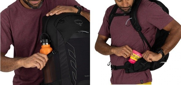 Dimensions: 22 x 11 x 11 inches Country of Origin: United States Color: Black Weight: 2 lbs. 6.1 oz. Model: Osprey Talon Size: One Size Fits Waist/Hips: 29-50 inches Department: Men Brand: Osprey Frame Material: Aluminum Number of Pockets: 6 + main compartment Material: See description Fits Torso Length (in.): 17-22 inches Type: Backpack Insect Repellent Treated: No Sport/Activity: Cycling, Hiking Capacity: 22 liters Features: See description
