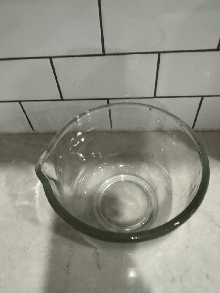 Oster Regency Kitchen Center Mixer SMALL Glass Mixing BOWL ONLY OEM 1.5 qt 6.5". This clear, glossy glass bowl is a genuine OEM component designed for use with Oster Regency Kitchen Center mixers. It has a 1.5 qt capacity and measures 6.5 inches in diameter with a height of 4 7/8 inches. This bowl is dishwasher safe and features a single setting/program with 10 speeds. It is made in the United States and comes with the small glass bowl and glass bowl components.