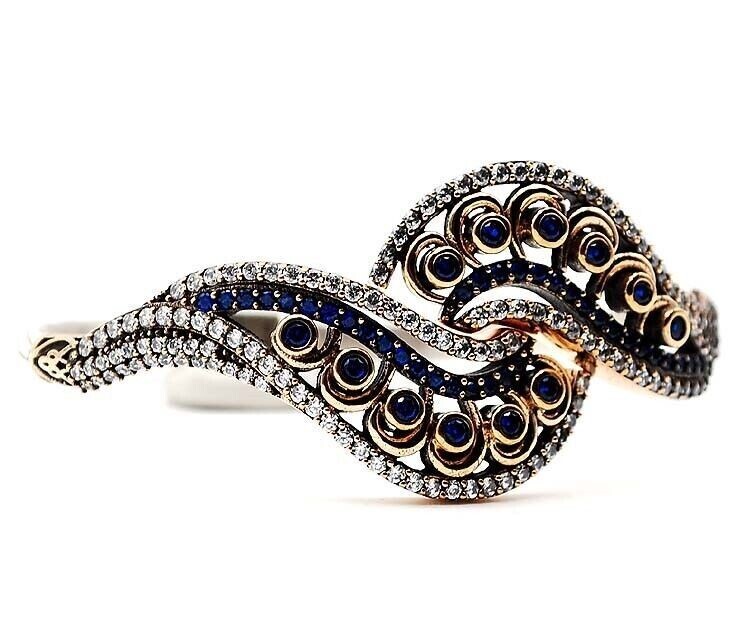 Menu Store FAQ Payment Shipping returns Feedback CONTACT US SHOP BY RING SIZE 4 4.5 5 5.5 6 6.5 7 7.5 8 8.5 9 9.5 10 10.5 11 11.5 All STORE CATEGORIES 99 cent daily deals Auctions Ending Soon New Arrivals Buy it now Rings Pendants Earrings Necklace Bangles & Bracelets POPULAR STONES Aquamarine Ruby Sapphire Pink Sapphire Emerald Topaz Opal Pearl Amethyst Blue Topaz Kunzite Herkimer Diamond Hand Carved Fossils Citrine Garnet Alexandrite Natural Rough Two-Tone Sterling Silver Store Newsletter Add old-english-silver to your Favorites and receive our e-mail newsletters about new items and special promotions. General Interest Sign Up Gemstone : Treated Blue Sapphire & WHITE TOPAZ Metal : Genuine 925 Solid Sterling Silver Total Carat Wt : 11 Total Gram Wt : 22 Dimensions : 1 1/4'' X 2 1/5'', 8" Inner Circumference Shipping & Handling