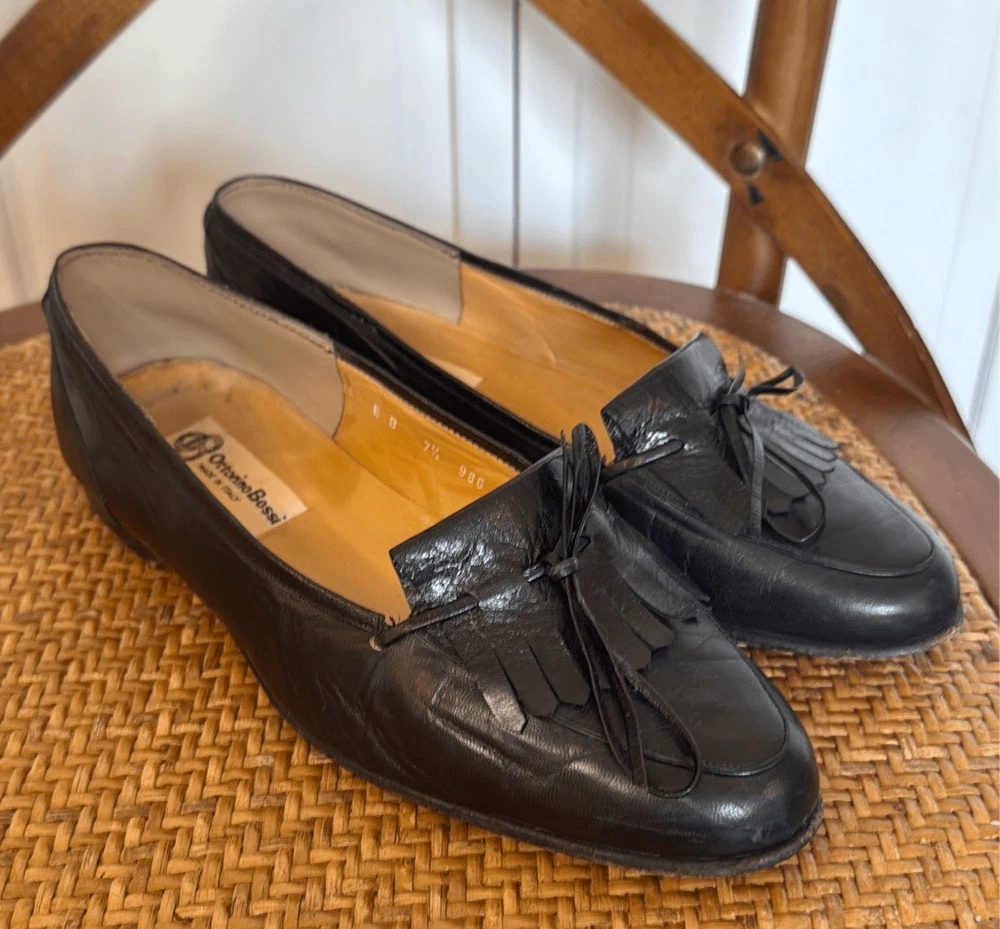 Brand: Ottorini Bossi Description: Vintage made in Italy leather fringe loafers Size: 7.5 Color: black Condition: Gently Worn Very Good ๐๐ป **Bundle and Save!!** all measurements are approximate and taken laying down