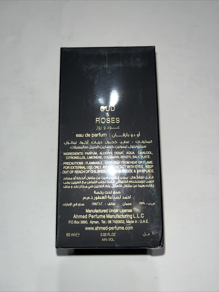 Volume:60mlgtin13:Does not applyScent:OudBrand:Ahmed Al MaghribiFormulation:SprayCountry/Region of Manufacture:United Arab EmiratesSize Type:Regular SizeFeatures:All Natural Ingredients, Cruelty-Free/No Animal Testing, Long LastingFragrance Name:Oud & RosesMPN:MaghribiType:Eau de ParfumUPC:Does not apply