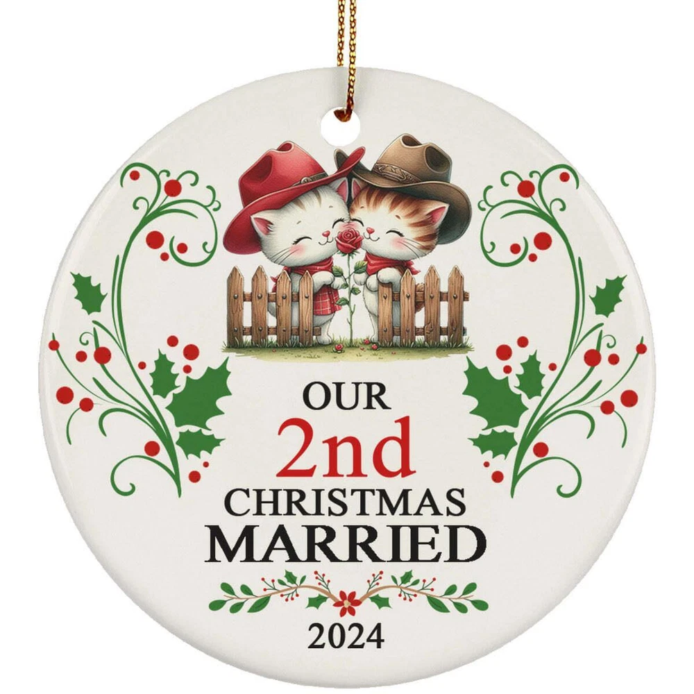 Our 2nd Years Christmas Married Ornament Gift 2 Anniversary Cute Cat Couple