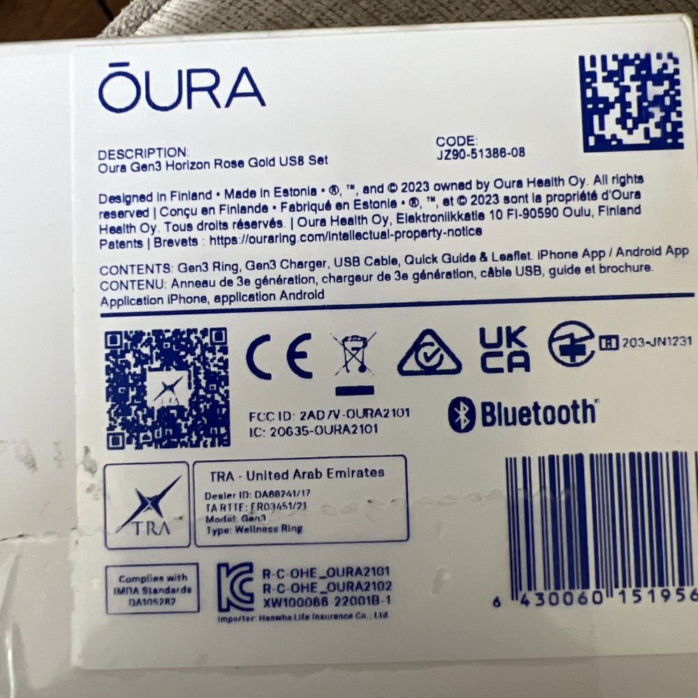 Setup account to make sure this works. I'm listing and pricing as USED!!!! Box says rose gold however this black. The Oura Ring Gen 3 Horizon is a sleek black smart ring designed for unisex adults. It operates on both iOS and Android systems, offering features like heart rate measurement, sleep tracking, and water resistance. Made of aluminum, this activity tracker boasts sensors including infrared, accelerometer, and GPS for accurate data collection during activities like running and jogging. With a battery life of up to 7 days, this smart ring provides comprehensive fitness monitoring in both decimal and imperial measurement systems, making it a versatile and convenient tool for tracking health and wellness.