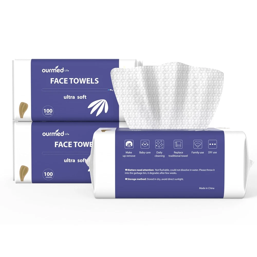 [Ultra Soft and Safe for the Skin] Our biodegradable disposable face towels are stronger, softer, and more gentle because they are made entirely of rayon fabric. All skin types-normal, oily, dry, or sensitive-can safely and efficiently use these facial towels without fragrance [Comfortable Use and Get more Value ] You can enjoy using our 100-count face care facial towels and renounce to the regular thin paper towels that break easily. Our thickened and delicate face towels disposable are made without using lint, perfume, or chemicals. Its excellent water absorption and retention set it apart from common face towels [One Solution for All Your Skincare Needs] Our face towels for cleaning are an optimal choice when you want to clean your face of debris, extra oil, long-wear foundation, and sunscreen residues. They were created to help your skin feel fresher and more comfortable [All in One Face Towels] These facial towels are an ideal choice to be used for cleaning your hands, personal care or child care, removing makeup, wiping your face regularly, or cleaning your home. They are ideal for traveling and outdoor activities [Safe and Delicate] Our main goal is to create disposable face towels in a safe setting so that they are delicate with your skin and respect also the environment. That’s why we don’t use any dangerous substances that could have any negative impact, such as formaldehyde and fluorescent agents. Size: 7.8 " x 7.8 " Product Description Our vision is to bring healthier, safer, and more comfortable products to every family. The natural oil in your skin cause zits, pimples, blackheads, and acne breakouts by clogging your pores, surrounding dirt, and hardening. These skin problems will get worse due to the use of inappropriate skin care products. Ourmed life began to produce personal-care and medical products since 3 decades ago with advanced technology and clean production environment. We often wonder what we can do to help more people to improve their skin condition, and that is the original intention of our production of face towels. After decades of painstaking research in a medical-grade production environment, we always try our best to make our customers happy and comfortable with our products. From raw materials to finished goods, we control every detail in our manufacturing process. Every product we produce can be tracked back to its life. Start your skincare with our disposable face towel.