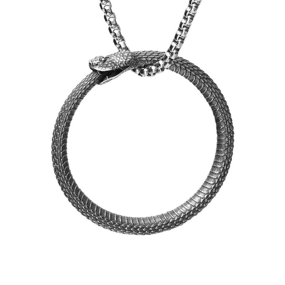 Ouroboros Snake Pendant Necklace Durable Stainless Steel Chain Never Fades