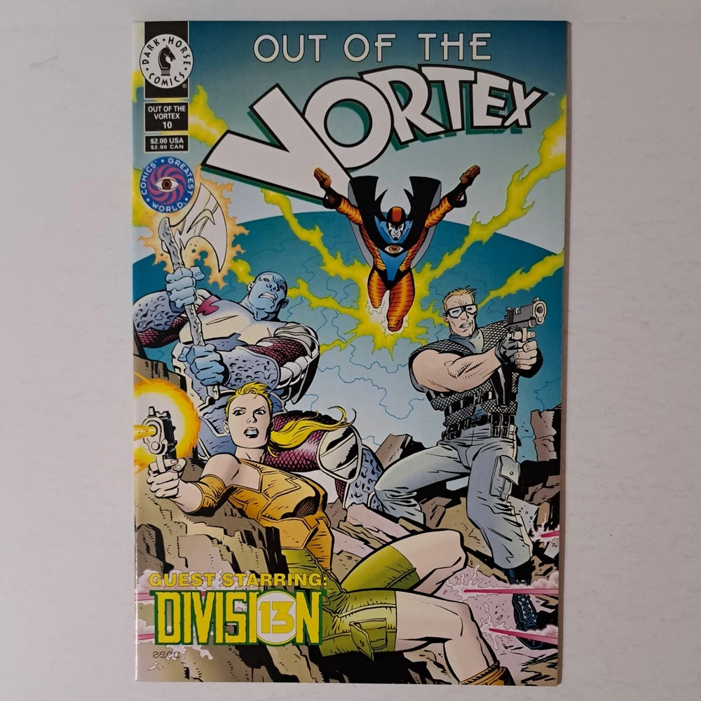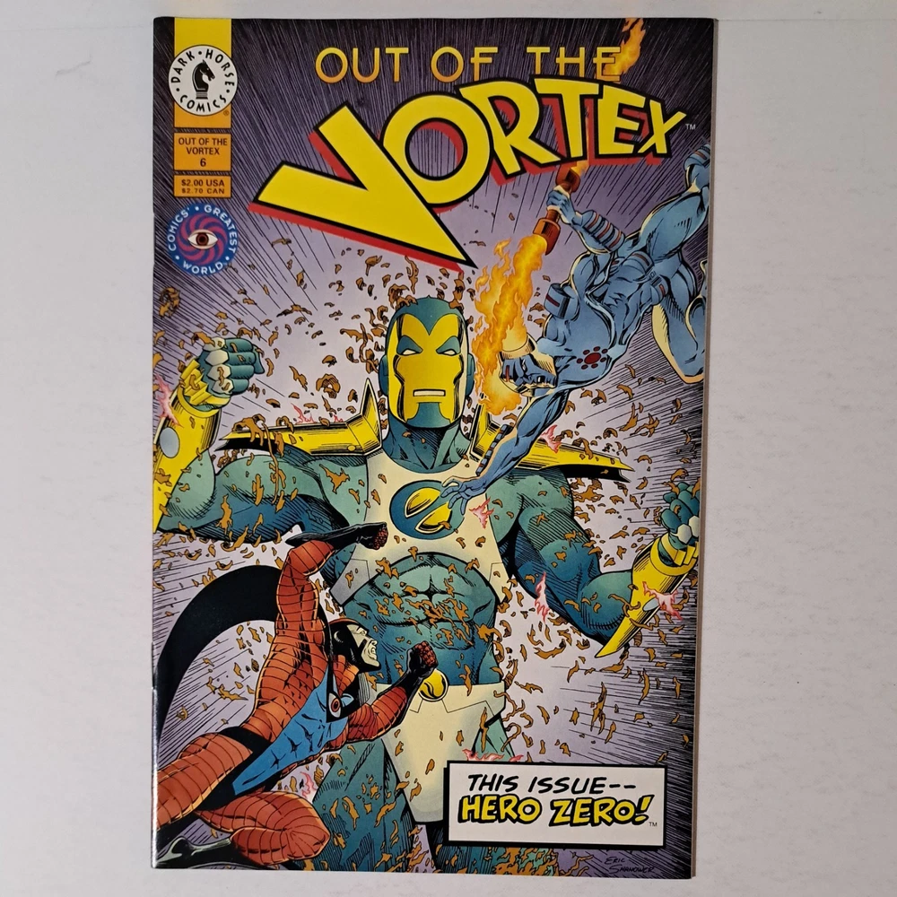 Dive into the gripping narrative of "Out of the Vortex #1-12," a complete series that promises to captivate fans of superhero lore. Published by Dark Horse Comics in 1993, this set is a cherished addition from Comics' Greatest World, featuring the talents of John Ostrander and Damon Willis with artwork that stands as a testament to the era's Modern Age of comics. Each issue is a single issue format, bursting with vibrant illustrations and engaging storylines that are sure to revisit the excitement of the early '90s comics scene. Complete with original English language text and showcasing the renowned cover art of Mike Mignola, Doug Mahnke, Arthur Adams and Walt Simonson, this collection is a must-have for both long-time enthusiasts and new admirers of US Comics traditions.