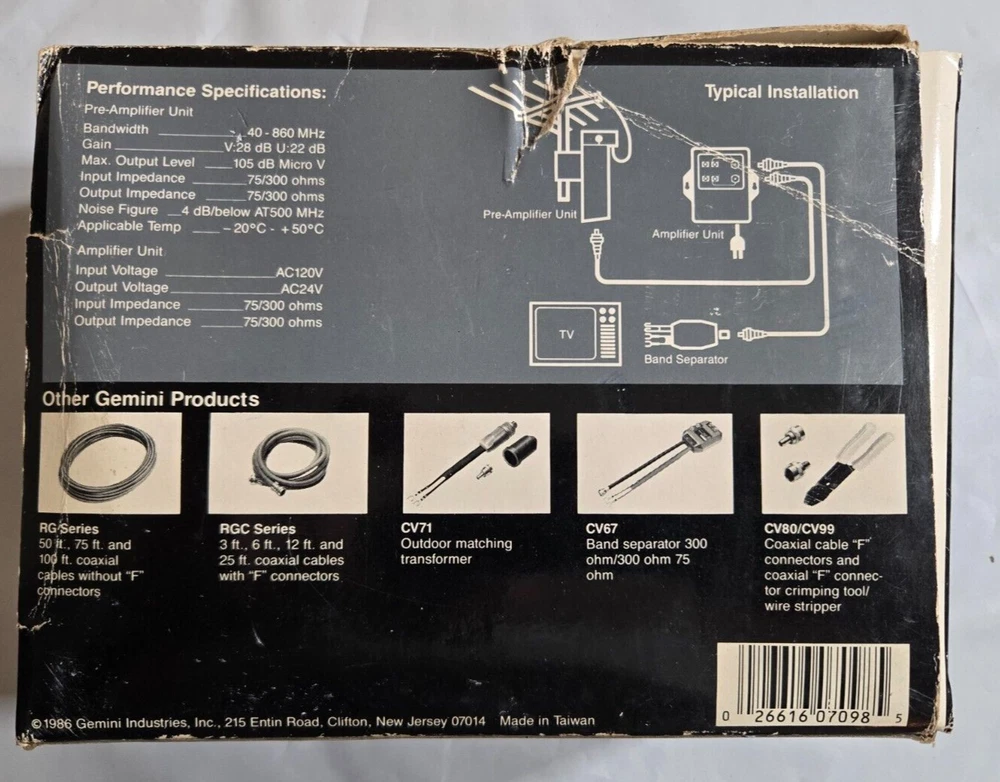 Outdoor Antenna Amplifier Gemini UHF/VHF/FM Booster High Gain DA900 in an open box, never used. @MovingMerch we do: -Cool products that people are looking for -Hard to find products that people are looking for -Same day handling -Free 30 Day Returns