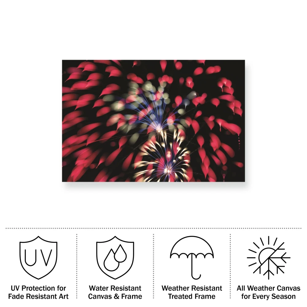 OUTDOOR WALL DECOR - This outdoor wall art is made of all-weather canvas and treated natural wood that can be placed outdoors with direct exposure to the elements without fear of fading. WATER RESISTANT CANVAS - Specifically designed to be placed out in the elements, our weather resistant canvas will provide long-lasting use in any outdoor location. DIGITALLY REPRODUCED - The sharp, colorful photographs on the outdoor art have been digitally reproduced with vibrant colors, printed on artist canvas, and stretched on all-season stretcher bars. GALLERY WRAPPED - This canvas outdoor wall art is gallery wrapped, meaning the print is wrapped tightly around the frame and secured at the back for a clean finish and an art-gallery-style look. PRODUCT DETAILS - Materials: All-Weather Canvas and Weather Treated Natural Wood. Mounted Hanger Included.