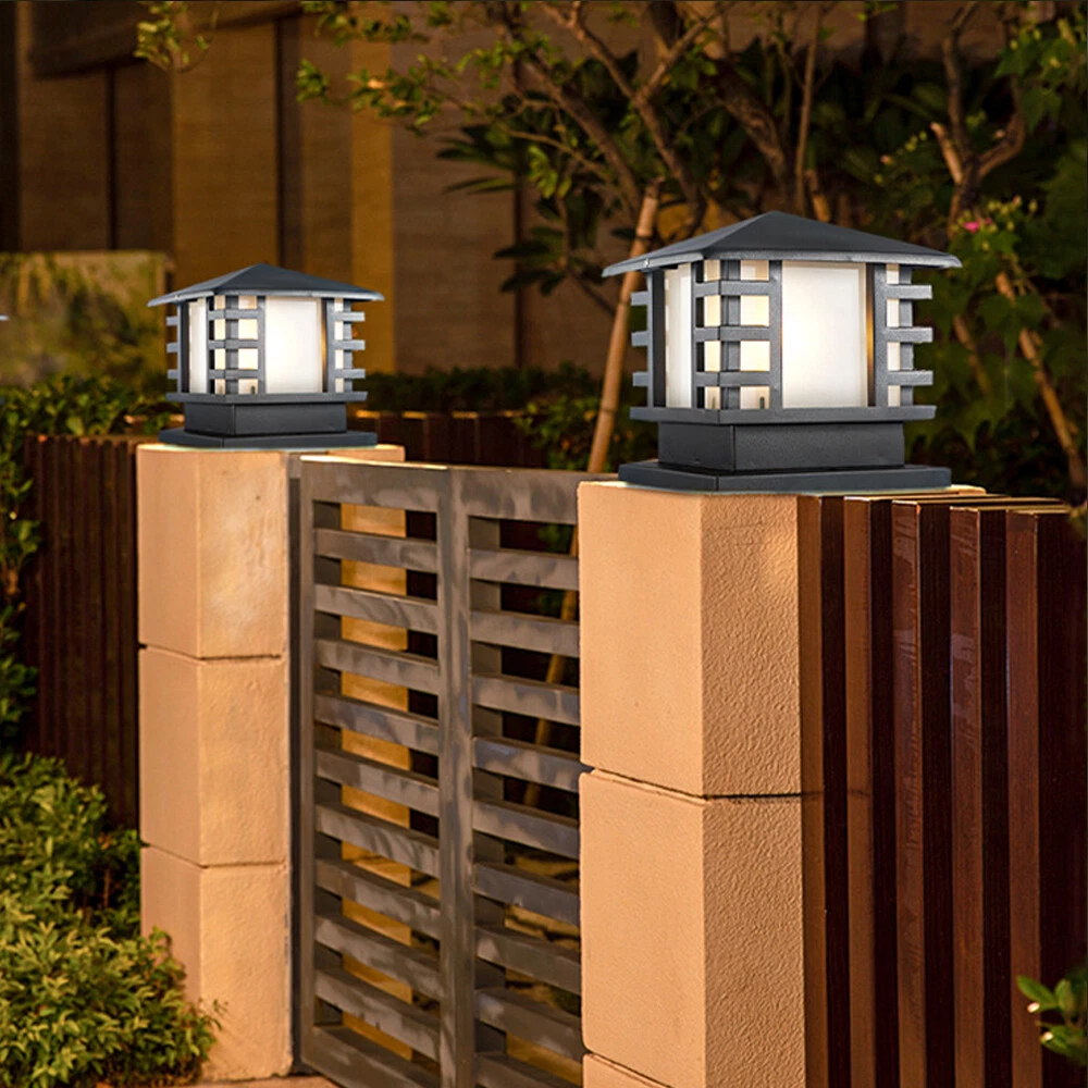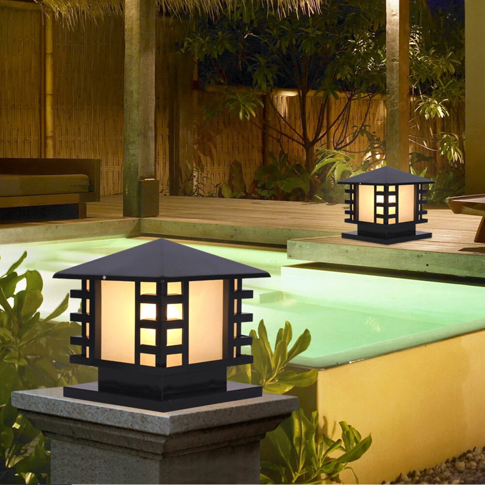 Outdoor Garden Pillar Lamp Retro Pillar Light Lantern Yard Gate Post Lamp Black