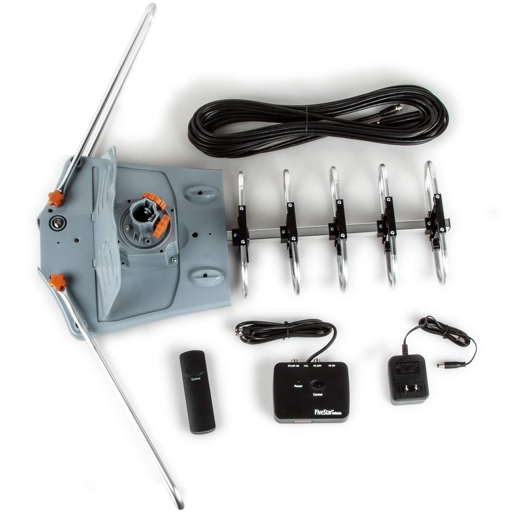 2019 MODEL WITH ENHANCED DESIGN A Minute to set up for a lifetime of free 1080HD 4K TV Clear HD image quality. "Auto Gain Control": Gain 25-35db, New technology for adjusting high quality signal reception performance. Built-in Super Low Noise Amplifier: Operating Frequency 45-860MHz. Built-in LTE filter which removes the interference caused by 4G phone signals and ensure the noise-free digital TV reception. Full band DTV/VHF/UHF Receiver: Supports 4K HD TV, 1080p,1080l, 720p Broadcast, Radio. 360 Degree Rotation. US, Canada, Mexico, Latin America and around the world Free up to 150 Local HDTV Channels 150 miles long range and dual TV outputs --full HDTV support 720p, 1080i, 1080p | receving: VHF 170-230MHz | UHF 470-860MHz | receive digital broadcast high definition TV signals. Wireless remote controller -- Built-in 360 degree Strong Motor rotor | Built-in Super High Gain and Low Noise Amplifier | includes 40FT outdoor TV antenna Coaxial cable. Easy for you to place it to get the best reception in your house. Support 2 TVs at the same time with a splitter. Weather resistant: 150 miles antenna is for outdoor using. Antenna is lightning protected, durable design with grounding done -don’t get struck out by bad weather. [Product Content] Package only included Antenna, Control Box, Remote Control, Power supply, 40ft RG6 Coaxial Cable, Mounting Pole and Instruction (4-Way Splitter is not included) Snap-On Installation--Snap On Elements no tools required. Comes with an easy-to-follow user manual so you can install the antenna with ease.