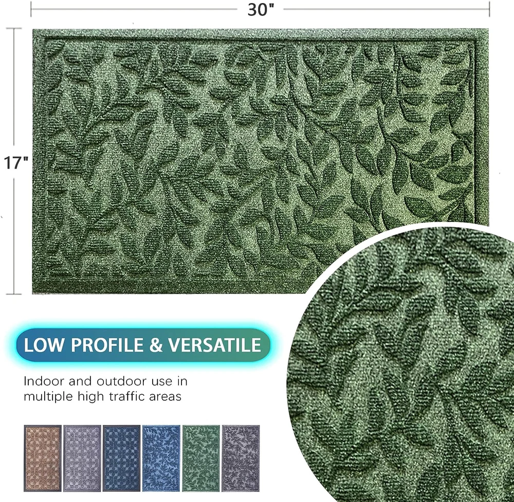Item Thickness: 17 Inches Size: 17"x30" Style: Modern Brand: Does not apply Occasion: Housewarming Special Feature: Non Slip Rug Form Type: Doormat Indoor/Outdoor Usage: Indoor Min Required Door Width: 17 Inches Number of Pieces: 1 Pile Height: Low Pile UPC: 313101685688 Shape: Rectangular gtin13: 313101685688 Pattern: Leaf Item model number: 7301 Product Dimensions: 30"L x 17"W Back Material Type: Rubber Room Type: Hallway Type: Does not apply Age Range (Description): Adult Theme: Welcome Weave Type: Tufted Is Autographed: No Country of Origin: China Model Name: DD7301 Material: Rubber Color: Leaves Green Construction Type: Machine Made Item Weight: 2.23 pounds Is Stain Resistant: No
