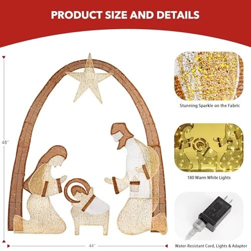 Outdoor Lighted Set for Christmas Decoration, 48Inch Large Nativity Scene