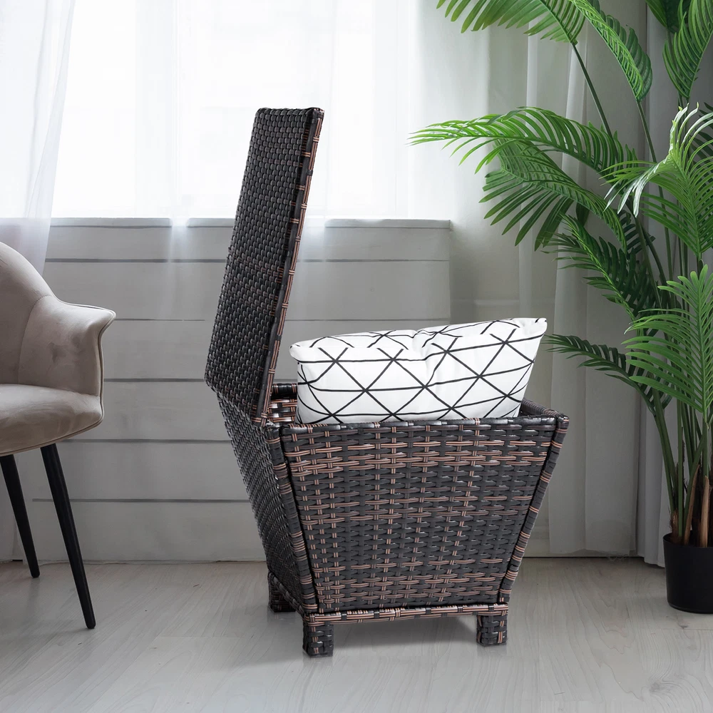 Outdoor PE Wicker Storage Side Table Small Patio Container for Hose Cushions