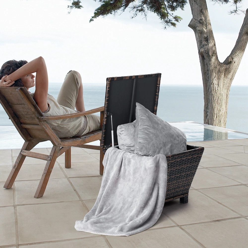 Introductions: Upgrade your outdoor space with our Outdoor PE Wicker Side Table with Storage. This versatile piece combines the functionality of a side table with the convenience of a storage container, providing a practical solution for organizing your outdoor essentials. The elegant brown gradient rattan design adds a of sophistication to your patio or garden. With its all-weather handwoven PE rattan construction and sturdy steel frame, this side table ensures durability and-lasting use. Maximize your outdoor storage options with this stylish and functional side table. Features: 1. Versatile Design: Serves as a convenient side table for your drinks and snacks, while also providing ample storage space for your hose, cushion, towel, and more. 2. Ample Storage Space: Features a 13-gallon storage capacity for to keep hose, cushion, towel, and other outdoor essentials organized and within reach. Keep your patio neat and tidy without compromising on style. 3. Smooth Opening and Closing: Air springs and pneumatic rods enable easy access to your stored items, making your outdoor activities more convenient and enjoyable. 4. All-Weather PE Rattan: The exquisite handwoven PE rattan construction is designed to withstand various weather conditions, ensuring-lasting durability. 5. Sturdy Steel Frame: The robust steel frame provides stability and support, making this side table reliable for everyday use. Specifications: 1. Material: PE Rattan, Iron, PVC Board 2. Color: Brown Gradient Rattan 3. Overall Dimensions: (19.7 x 19.7 x 16.5) in / (50 x 50 x 42) cm 4. Base Dimensions: (13.4 x 13.4) in / (34 x 34) cm 5. Height from Ground: 2 in / 5 cm 6. Storage Dimensions: Upper Opening: (19.7 x 19.7) in / (50 x 50) cm, Lower Opening: (11.8 x 11.8) in / (30 x 30) cm, Height: 12.6 in / 32 cm 7. Storage Capacity: 13 Gallon 8. Weight Capacity: 112 lbs / 50 kg 9. Net Weight: 14.3 lbs / 6.5 kg Package Includes: 1 x Side Table with Lid 1 x Set of Hardware Assembly 1 x English User Manual