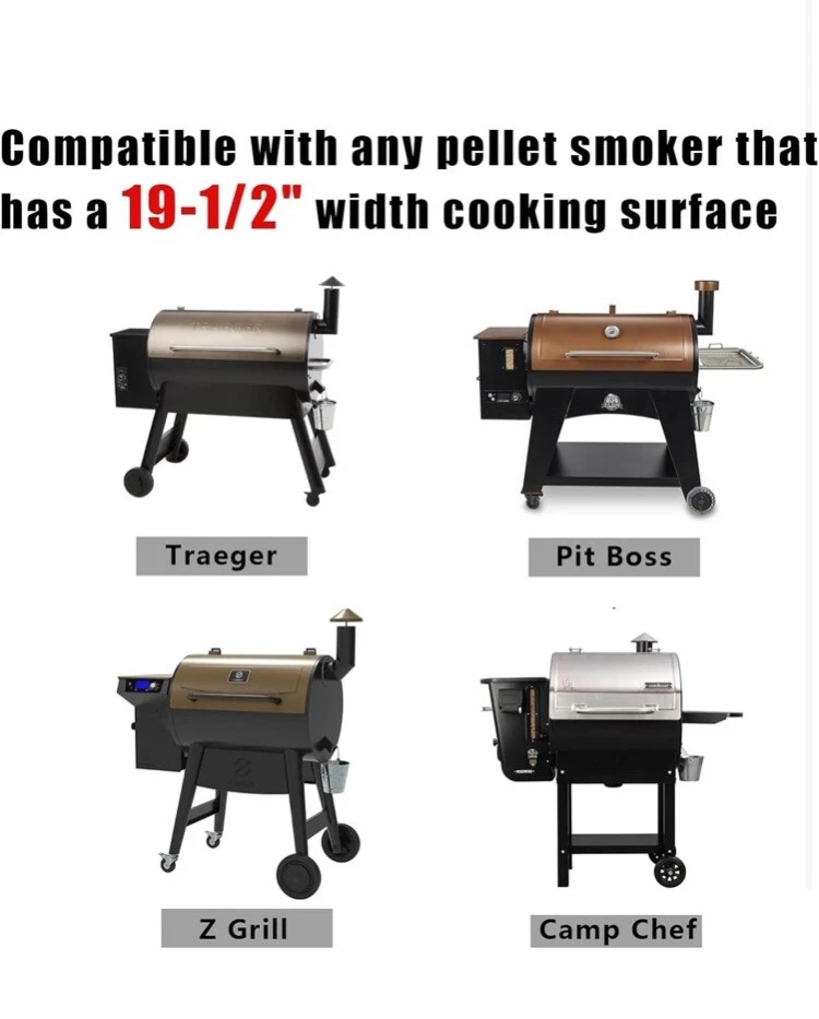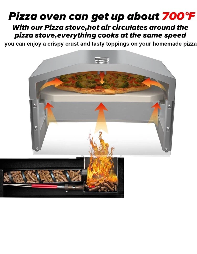 【Apply to】Pellet grill Pizza Oven attachment compatible with any pellet smoker that has a 19-1/2" width cooking surface, Traeger/Pit Boss/Camp Chef/Z grill (Not compatible grills which fire burn pot on the side,like as Louisiana Grills) 【Pizza oven】Pizza oven attachment made from premium stainless steel,metal lid built-in thermometer to help you monitor the temperature to achieve the best results . Enclosing pizza oven chamber design to concentrate the heat from the pellet burner . It is can get up about 700°F (371°C) in just 10 minutes! Once at this temperature, the pellet pizza oven can cook a 14-inch Neapolitan-style pizza in around 5 minutes,crispy and had the authentic look and taste 【Pizza Stone】The pizza stone made of cordierite ceramics,it can drain the external steam from the dough and promote perfect crust, making the inside moist and fluffy makes the pizza bake very evenly, suitable for family-together 【Feature】Versatile enough to control and cook at lower temps for items like bread, chicken, and casseroles .Place a Cast Iron pan on the top to sauté sauces, roast potatoes and more. Even cooking surface, convection air creates a crisp crust and melty topping at the same time 【Easy to install 】The first step please read the manual assemb the pizza oven(in the package box ) . Remove cooking grates, second shelf, and fire baffle (if has it ).place bracket,it slides easily into the oven but one has to be careful that it aligns with the guides.Pace the pizza stone,line up the holes of the cover with the screws of the base.Installed complete