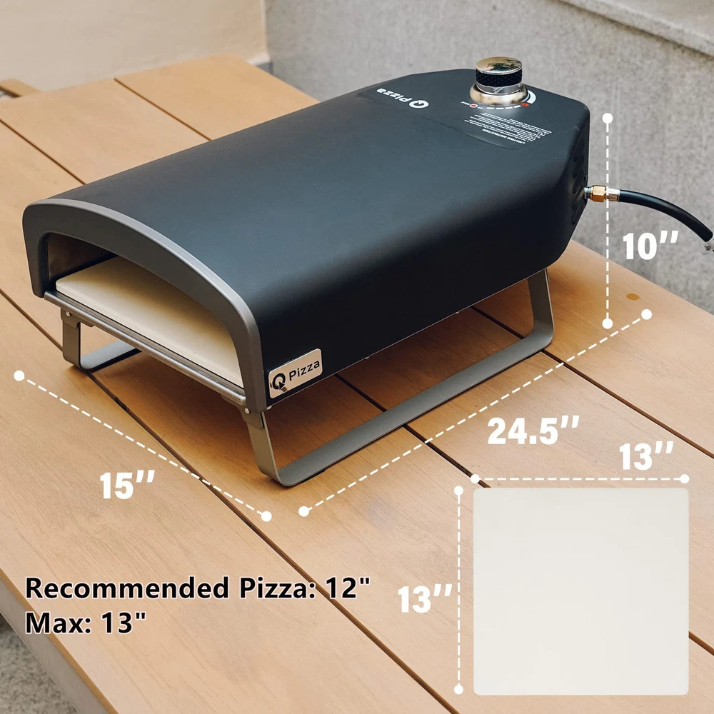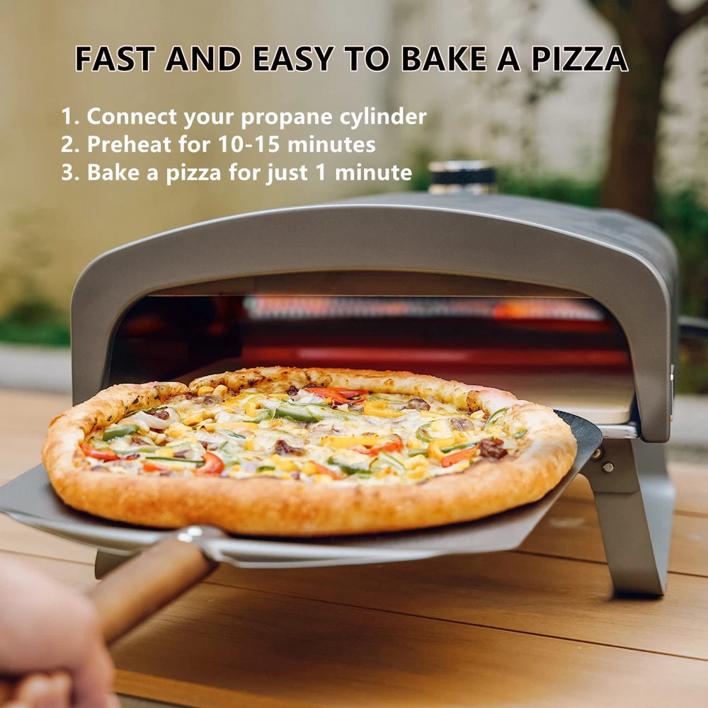 【Portable Outdoor Gas Pizza Oven】Newest series gas pizza baking oven is specially designed outdoor application, either portable or transportable, cooking with portable gas pizza oven means serving up fantastic dishes in your garden backyard, at the beach or any outdoor space. 【10-15 Min Rapid Preheating & 1 Minutes Baking】- Connect a 20lb propane tank and it takes about 10-15 minutes to preheat, and when the temperature reaches 500 degrees Celsius, the pizza can be baked in one minute. Which means that you can prepare multiple pizzas in advance and bake them all in a few minutes. Spend less time to baking and more time to enjoy the delicious. 【Perfect for Outdoor Garden Backyard】 Allows you to try out all your favorite recipes and bake bread, chicken tenders, shrimp, cookies, pies and any other pastry to perfection. 【Easy to Install, Operate & Clean】- Assembles and installs in minutes with no tools. The outdoor pizza oven is easy to operate for any professinal and amateur pizza maker, even the new learners. Fast, easy way to bake fresh/frozen pizza! Just apply some stainless steel cleaning solution to the outside of your unit by a small towel or rag. 【Great Gift for BBQ Pizza Lover & Camper】It's a best gift for any pizza lover. Allows you to try out all your favorite recipes and bake bread, chicken tenders, shrimp, cookies, pies and any other pastry to perfection.