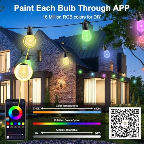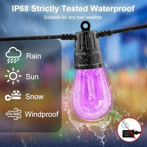 Return Policy Fast Delivery Trusted seller Outdoor RGBW String Lights, 49ft 15 Bulbs Patio Lights with Remote & APP, S14 Dimmable Color Changing IP68 Waterproof Dimmable LED Hanging Lights for Garden Yard Porch Party Product Description ?【Creative APP & Remote Control RGBW Outdoor String Lights】Customize the color of the permanent outdoor lights through the Magic Lantern APP. T are 16 million colors and 47 vibrant scene modes for you to choose from, and they can also be adjusted to warm white , you can DIY your favorite color for each bulb, suitable for a variety of scenarios use. ☔【Commercial Grade IP68 Waterproof String Lights】The RGB patio lights have 15 pieces shatterproof bulbs, This thickened PC S14 bulb is shatterproof and not easy to deform. The LED dimmable string lights adopt a fully enclosed IP68 waterproof design as a whole, and can be used in environments such as sun, wind, rain, snow, and humidity. Our Bulb composed of high-quality industrial-grade plastics, are light and safe, and have better anti-fall ability.【Note: the power adapter is not waterproof】 ?【Smart Control & Music Sync RGBW Lights】You can adjust the brightness between 0%-100% with the mobile APP, you can also set timers and schedule times to control when gazebo lights turn on/off. The smart garden lights also have a built-in microphone, which can synchronize the outdoor lights with any type of music. The party lights outdoor dance with the music, allowing you to enjoy an unparalleled immersive sound and light experience on Christmas, Halloween, and other festivals. ?【Multi-String and Easy to Install String Lights for Outside】Our 49ft RGBW hanging lights can be connected in series make outdoor color changing lights to extend up to 98ft in length, which is great for your large yard use and your need. And the 0.19"/0.016ft diameter hanging holes and included hooks allow you to easily hang your outdoor string lights on a wall, coffee shop, garden or backyard using wires, ties or screws.【Note: We only have one string lights in the package】 ?【Wide Application Indoor & Outdoor Ambient Lights】Our RGBW outdoor lights for patio provide amount of lights for deck, porch, gate, terrace, bistro, trail, restaurant, garden, tent, backyard, wedding, leisure, dinner party, Christmas, halloween decor. We provide 24 month comprehensive warranty. If you have any questions about rgb string lights outdoor, please feel free to contact us via the message box or customer service email, we will give you satisfactory solution within 24 hours. Shipping Returns Payment Shipping Shipping is FREE to all addresses other than APO/PO boxes in the lower 48 states. All our stock ships from US-based warehouses. Shipped via USPS or UPS (depending on location and package weight) Unless stated otherwise, all orders will ship within 24-72 hours of your payment being processed. Check our feedback to see the great reviews of FAST shipping we offer. Returns Seller does not accept returns Payment We currently accept payment via eBay managed payments only. Once payment is cleared, we will dispatch your shipment within 1-3 business days. Please refer to the "Shipping" tab for more information regarding shipping speed to your destination.