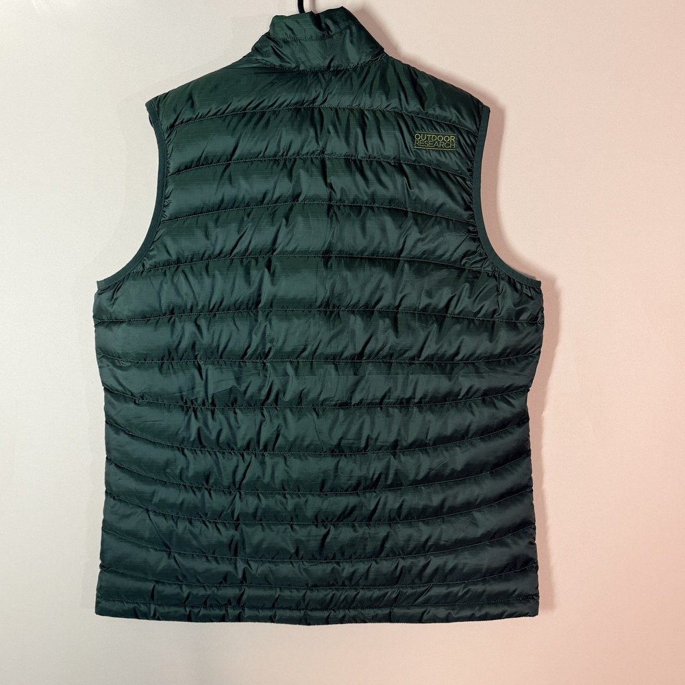 The Outdoor Research Transcendent Goose Down Puffer Vest in Forest Green is a high-quality and stylish outerwear piece for men. This vest is insulated with warm down feathers, making it perfect for colder weather. The nylon outer shell and polyester lining provide durability and comfort. The vest style adds a sleek and modern touch to the overall look, while the size Large ensures a comfortable fit for most men. Perfect for outdoor activities or everyday wear, this vest is a versatile and practical addition to any wardrobe.