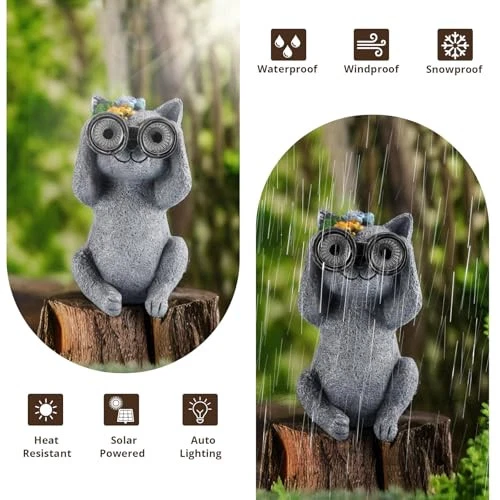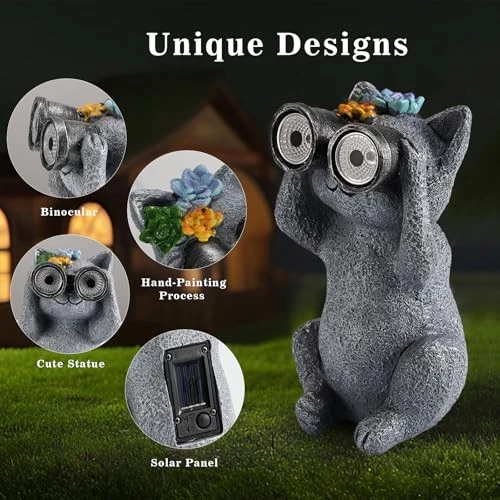 30 Days Return Policy Fast Delivery Trusted seller Outdoor Solar Garden Statues, Funny Garden Decor Statue - Resin Animal Statues Decor with Binoculars, Outdoor Solar Statues for Patio Decor, Unique Garden Gifts for Women. Product Description ?Cute Cat Statue: This outdoor garden statue is made of high quality resin with good waterproof and dustproof; the solar garden cat statues measures 3.9'' (W) x 3.7'' (D) x 6.7'' (H); the solar cat statue holding binoculars to look into the distance embellished with cute flowers, unique design, bring lasting and charming decorative effect to the garden. ?Solar Automatic Charging: The solar garden decor statues comes with solar panel. This garden statue is easy to install, simply switch the solar lantern ON and leave it in the "ON" position during the daytime. The solar panel will charge during the day and automatically light up at night. If you are not sure whether the button is turned on, please cover the solar panel with your hand. If the switch is turned on, it will light up. ?Unique Gifts: This outdoor statue is exquisite and cute, and will add a charming touch wver it is placed. It is a unique gifts for animal lovers and gardening gifts; warm gifts for mom and grandmother who love outdoor space, Our cute solar statues are great gifts for Housewarming, Mother's Day, Father's Day, Easter, Thanksgiving, Birthdays, New Year, Christmas, etc. ?Beautiful Home and Garden Decoration Gift: The unique and cute design style of this solar statue makes it a very beautiful decor accents. Suitable for all kinds of scenes. Due to its unique shape and solar functionality, it is not only suitable for garden decor, lawn decor, porch decor, patio decor, backyard decor, adding life to small corners of the garden. It is also suitable for home decor, house decor, used to decorate window sills, desks, corridors, balconies and so on. ?Professional After-Sales Service: We take your shopping experience very seriously, if you have any questions about this product, please contact us directly, we will provide you with a wonderful experience from purchase to placement in your garden. Shipping Returns Payment Shipping Shipping is FREE to all addresses other than APO/PO boxes in the lower 48 states. All our stock ships from US-based warehouses. Shipped via USPS or UPS (depending on location and package weight) Unless stated otherwise, all orders will ship within 24-72 hours of your payment being processed. Check our feedback to see the great reviews of FAST shipping we offer. Returns As our valued customer, we will do our best to make sure the product you receive arrives to you on time and as expected. If you are not satisfied with your purchase, please contact us within 30 days of receiving your order to process a return. Payment We currently accept payment via eBay managed payments only. Once payment is cleared, we will dispatch your shipment within 1-3 business days. Please refer to the "Shipping" tab for more information regarding shipping speed to your destination.