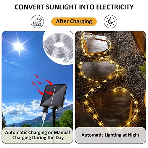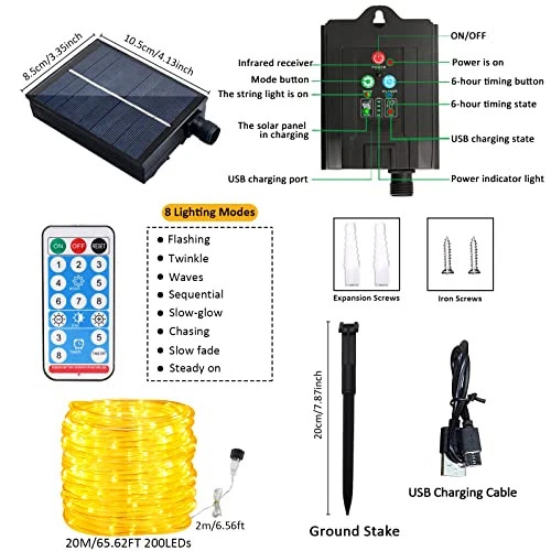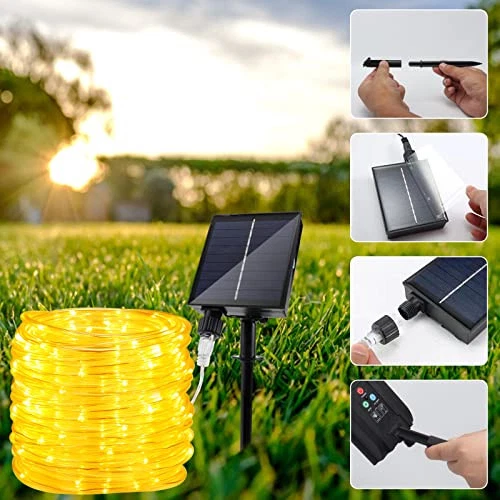 Outdoor Solar LED Rope Lights, IP65 Waterproof Rope Lights 22m/72.2ft 200LEDs