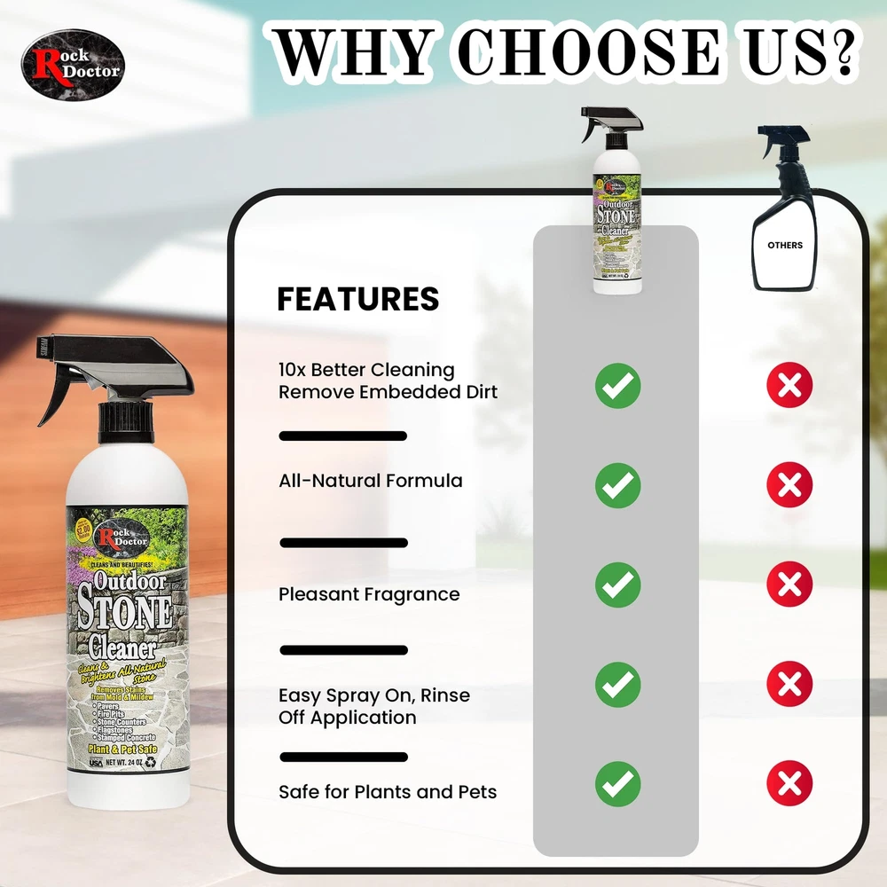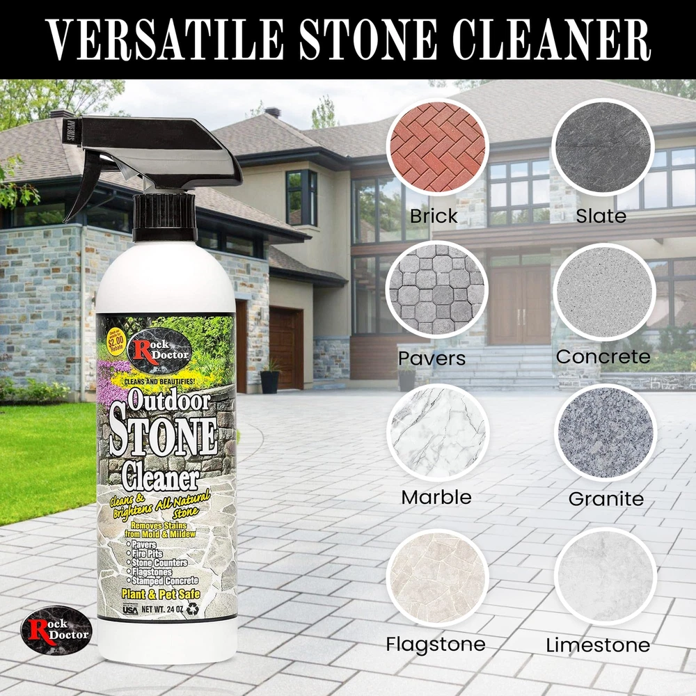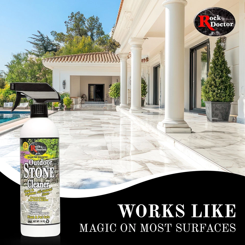 has been serving the marketplace for over 20 years with our fabulous array of stone care and kitchen cleaning products. Each product has been produced with you, The consumer, in mind. Our goal is to keep your kitchen and bath looking clean and shiny, just like it was brand new. We are proud to introduce our new outdoor stone cleaner. This product is specially formulated to clean and brighten all natural stone including pavers, fire pits, outdoor stone counters, flagstone and stamped concrete. If you have spent thousands of dollars in an outdoor kitchen you couldn't ask for a better product to protect that investment. Plant and pet safe. All Natural Stone Cleaner – Formulated with premium ingredients our stone cleaning spray works on a wide range of outdoor landscaping areas including stepstones, pavers, granite walkways, stamped concrete, and other areas. Removes Stains, Brightens Surfaces – Along with helping clean away dirt and grime our stone tile cleaner works deeply into the surfaces to help lift away stains and discoloration caused by mold and mildew for more effective and efficient support. Maintain a Vibrant Outdoor Landscape – Using our stone floor cleaner on your outdoor landscaping areas can help you create more beautiful curb appeal in the front of your home and a more welcoming, relaxing space in the backyard. Indoor and Outdoor Safe Use – Safe for all different types of stone our granite stone cleaner can be used for both indoor and outdoor projects, which makes it a great choice for both residential and commercial areas. Proudly Made in the USA – Like other products our versatile stone cleaning formula is made right here in the United States under strict guidelines to ensure it’s safe and effective. And all backed by support you can count on.