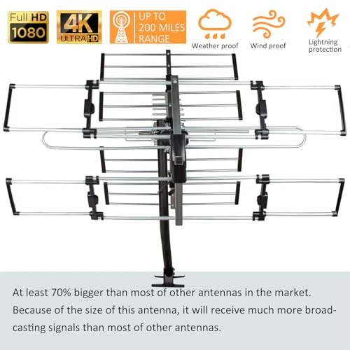 Return Policy Fast Delivery Trusted seller Outdoor TV Antenna 200 Miles Long Range Upgraded Yagi HD VHF UHF Support ATSC 3.0 and 4K Broadcast Product Description -High Gain Reception: The Yagi antenna is renowned for its high gain capabilities, allowing it to receive signals from a long distance with excellent clarity and reliability. Will also support ATSC 3.0 and 4K broadcast when available. -Directional Signal Reception: With its directional design, the Yagi antenna focuses its reception in one direction, effectively capturing signals from a specific transmitter while minimizing interference from other directions. - Super Easy Installation: The product is designed for effortless setup without the need for any tools. Its and lock design allows users to assemble and disassemble the parts quickly and easily, saving time and effort. -Innovative folding structure: The outdoor antenna features an innovative folding structure that enhances its portability and convenience. This design allows the antenna to be detached easily into a compact size for easy storage and transportation, making it ideal for users who may need to move or store the antenna frequently. -Receive UHF/VHF Signals: The outdoor antenna is capable of receiving High-band VHF and UHF signals in crystal-clear HD allowing you to watch channels from up to 200 miles away with our 20” extra-long and durable J mounting pole (optional accessories). This allows users to access a wide range of channels, including those broadcasted on UHF and VHF frequencies, providing greater flexibility in channel selection. Will also support ATSC 3.0 and 4K broadcast when available. Shipping Returns Payment Shipping Shipping is FREE to all addresses other than APO/PO boxes in the lower 48 states. All our stock ships from US-based warehouses. Shipped via USPS or UPS (depending on location and package weight) Unless stated otherwise, all orders will ship within 24-72 hours of your payment being processed. Check our feedback to see the great reviews of FAST shipping we offer. Returns Seller does not accept returns Payment We currently accept payment via eBay managed payments only. Once payment is cleared, we will dispatch your shipment within 1-3 business days. Please refer to the "Shipping" tab for more information regarding shipping speed to your destination.