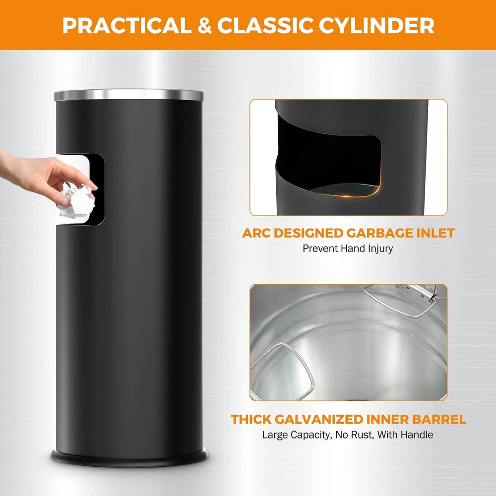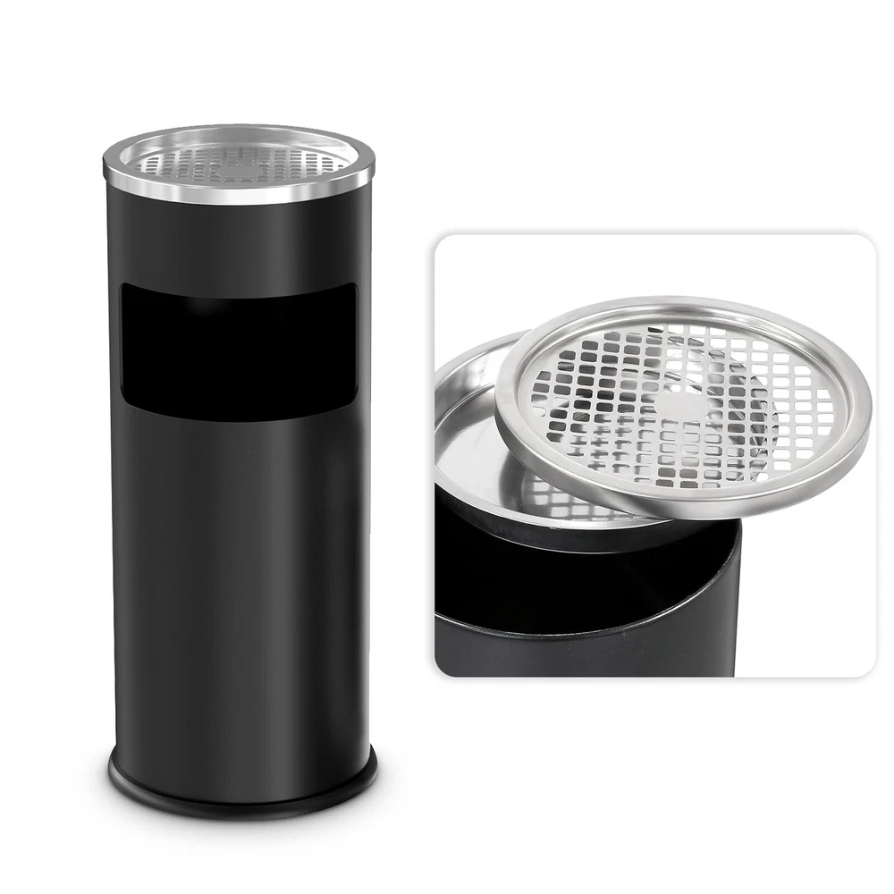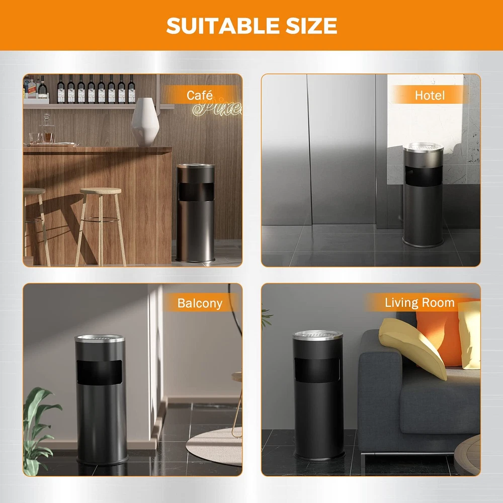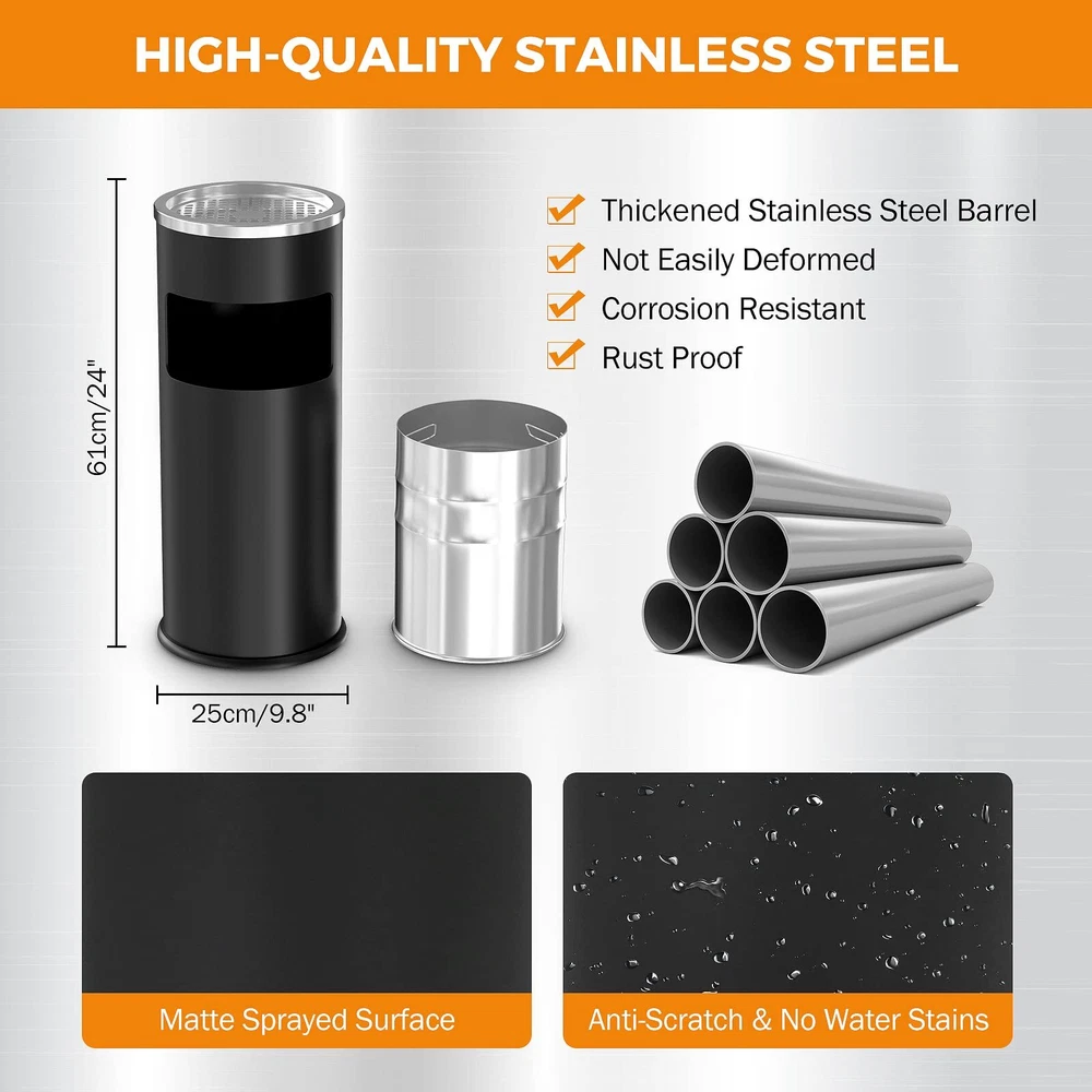 Specifications: Material: Stainless Steel Size: 25 x 61cm/ 9.8" x 24"(D*H) Descriptions: The trash receptacles with stainless steel ash urn molded into top of the receptacle lid are functional. Stainless steel construction provide great durability. This is a round garbage can with an stainless steel ashtray on top for cigarette disposal. For commercial, medical and industrial use. Equiped with an inner bucket for easily take out the trash. Designed to keep liner bags hidden from view. It is good for indoor and outdoor environments. Instructions: Step1: slip waste bag over inner bucket Step2: ribs hold bag in place Step3: place exterior over inner bucket Step4: secured and hidden waste bag Package Includes: 1 x Trash Can Dimensions: 25 x 61cm / 9.8" x 24" (D * H); Material: stainless steel. SIMPLE DESIGN - Cylindrical body with rounded edges to prevent hand scraping. UPGRADED MATERIAL - Worried about rusting in the outdoors? Don't worry, outdoor trash cans have been updated from metal to thickened stainless steel, making them more resistant to corrosion and suitable for indoor and outdoor use. The surface layer is rust-proof painted or brushed material, beautiful and durable. It can be placed outdoors without fear of the wind and sun. EASY TO CLEAN - modern trash can comes with a detachable, high-quality galvanized liner and a removable tartan tray on top. Recommended for putting grit, water or small pebbles. Easy to clean, practical and convenient. HIGH APPLICABILITY - Suitable for indoor and outdoor use. Can be placed in the kitchen, living room, bedroom, courtyard, toilet, etc. It can also be used for industrial, medical, and industrial purposes, in hospital corridors, next to hotel elevators, in outdoor parks, etc.
