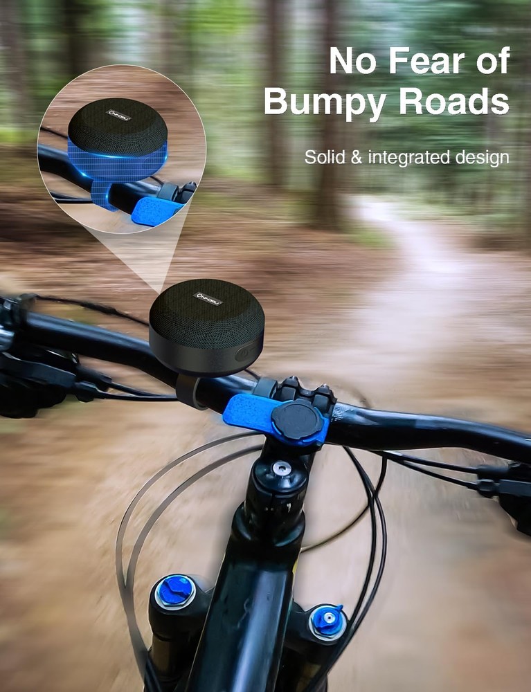 Portable Bluetooth Bike Speakers: This portable waterproof bluetooth bike speaker is small in size but with surprisingly sound. It is crystal clear and is loud enough to hear while riding your bike. Only 250g weight and 3.24 inches size ,this mini Bluetooth speaker is convenient to be carried anywhere Integrated Design : This 5W bluetooth bike speakers is integrated design allows the speaker to be mounted more stably on a bicycle, motorcycle or scooter. No fear of bumpy roads, you can use it with confidence when you riding whether you are on ordinary roads or mountain roads Up to 12 Hours of Playtime: bicycle speaker features a built-in rechargeable battery with up to 12 hours of battery life, long battery life allows you to enjoy music even outdoors High Compatibility: Wireless speakers adopt seamless Bluetooth 5.0. With AUX , you can also take it off the bike in your spare time, portable for phones, tablets, laptops, computers, Macbooks, MP3 players, etc. Please note that the distance between the phone and the speaker should not exceed 10 meters Waterproof & Durable: IP44 Waterproof, no more worrying about rain or spillsdurable. Fabric material and rugged rubber housing protects it on all of your riding