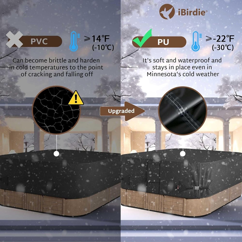 Store New Arrivals Add to Favorite View Feedback Contact Outdoor Waterproof Rectangular Hot Tub Cover 89 X 79 Inch Fit 88 X 78 or 87 X 77 or 86 X 76 SPA 600D Heavy Duty Rectangle Weatherproof Protectors Protective Cover Cap Description Item model number Black Hot Tub Cover 89 x 79 Closure Type Zipper Style hot tub cover Color Black Pattern Black Material 600D Fabric, polyurethane(PU) Item Weight 4 pounds Installation Type Manual Shape Rectangular Model Name Black Hot Tub Cover 89 x 79 Size 89" x 79" (7'5" x 6'7") Special Feature UV Resistant, Waterproof Product Dimensions 89"L x 79"W Proper Dimensions: Cover size 89 inch long, 79 inch wide, 18 inch high; Please measure the length and width of your hot tub before ordering, and order a cover that is longer and wider than your hot tub Weatherproof: Perfect for protecting your hot tub and hard top cover from inclement weather, our hot tub covers protect against falling debris, rain, snow, hot sun, and more, keeping your hot tub safe and in good condition Air Vents Design: Both sides are designed with air vents to expel moisture from the interior; Also designed with two fabric handles, it is easy to put on and take off; Please note, This cover can not be insulated, you still need to use the hard cover Well Made: iBirdie Hot Tub cover is made of heavy-duty fabric with a waterproof coating; All seams are double-stitched for strength and have a sealant attached to the seams to prevent tears, leaks, etc Secure Fit: Four adjustablebuckles and waterproof zippers on each corner ensure a secure fit for your spa cover, even in strong winds.You can trust our cover to stay in place and keep your spa protected, no matter the weather Product description Note: Order a cover that is longer and wider than your hot tub Can this hot tub cover handle snow and winter weather? Yes. This cover is designed for winter conditions such as snow, wind, cold temperatures, and debris. It helps protect your spa cover from weather exposure, but it is a soft protective cover and not designed to support heavy snow loads. Is this a replacement insulated hot tub cover? No. This is a protective weather cover designed to go over your existing hard spa cover. It does not provide insulation or heat retention and should always be used together with your original hot tub lid. Does the zipper closure help keep rain and snow out? The cover uses 4 corner zipper combined with adjustable buckles to help reduce water entry during rain and snow. For best performance, fully close all zippers and secure the buckles snugly. Proper installation helps improve weather protection. How does the cover stay secure in windy conditions? The cover features adjustable straps and buckles that fasten around the spa to help prevent lifting or shifting. When tightened correctly, they provide reliable wind resistance during normal outdoor conditions. How do I choose the correct size for my hot tub? Measure your hot tub’s length and width before ordering. Choose a cover that is slightly longer and wider than your spa for proper fit and easier installation. Measuring first helps ensure better protection and a more confident purchase. This hot tub cover offers two options: Black cover(600D fabric + PU coating) resists extreme temperatures, PU is lightweight but expensive; Brown cover(600D fabric + PVC coating) PVC is affordable, thicker, heavier. Both are Long-lasting and waterproof, please select your ideal cover based on needs. ABOUT US We offer the best prices around on high quality products. Our E-store includes media such as books, movies, music and games while offering electronics, toys, sporting apparel, clothing, tools, general home, garden items and more. SHIPPING We are always working hard to ensure your package arrives as soon as possible. Please understand that some factors like weather, high postal traffic, and the performance of shipping companies are outside of our control. We offer free shipping to the lower 48 states and ship within 2 business days of payment, usually sooner. We do not accept P.O. Boxes. Please provide a physical address. For shipping outside of the continental USA, we only use eBay's Global Shipping Program.The item is shipped to KY and then sent to the rest of the world. International customers are responsible for all duties and taxes. Continue to check out in order to calculate costs for shipping the item to your country. Messages regarding eBay's Global Shipping Program MUST be directed at eBay EXCLUSIVELY. RETURNS We offer a 30-Day Return Policy on items which you are not completely satisfied with. You have the option for a full-refund or an exchange of the item. No returns are available on items shipped outside of the USA. PAYMENT We accept PayPal. CONTACT US This page content is yet to come Please ad us to your favorite seller and visit again later Thank You CUSTOMER SATISFACTION We try our very best to make sure every customer is completely satisfied. If there's a problem, message us! We're happy to help. WE ACCEPT Copyright © 2021 AutoDS. | All Rights Reserved