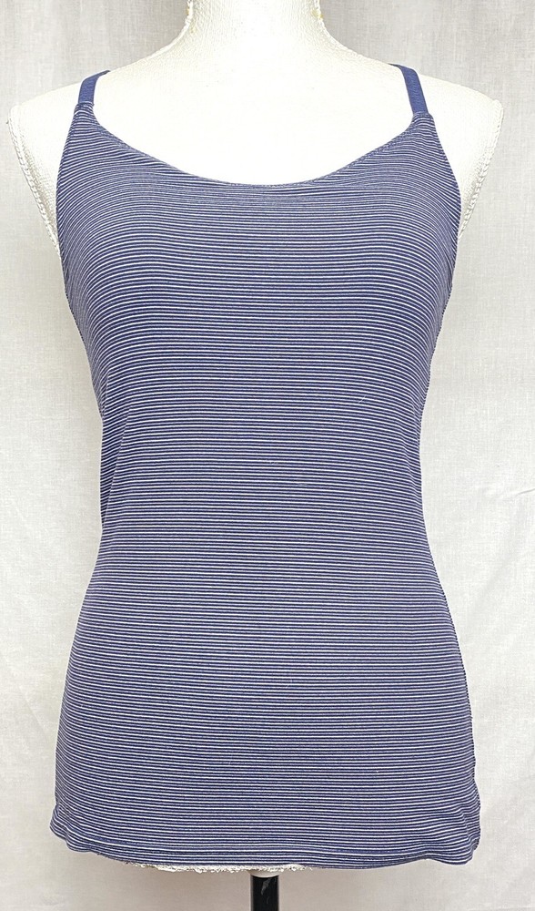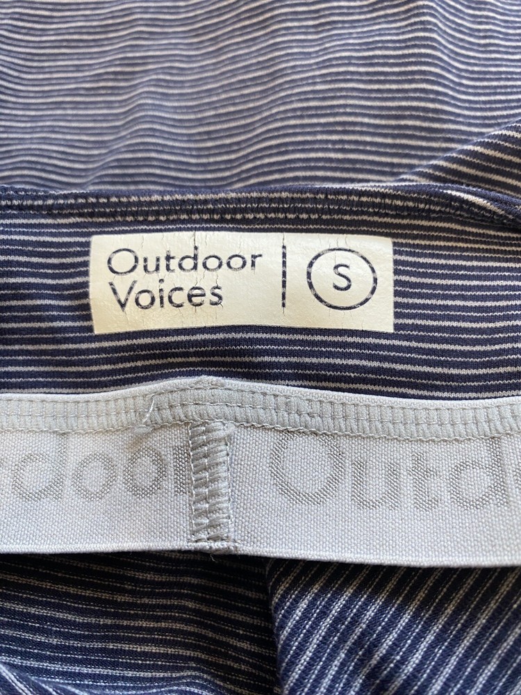 Outdoor Voices Womens Move Free Tank Top Size Small Striped Navy Gray Racerback very good used condition