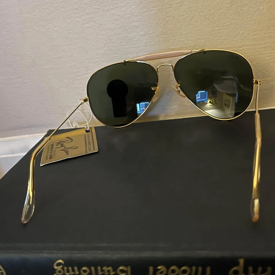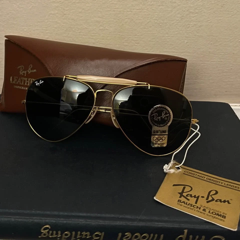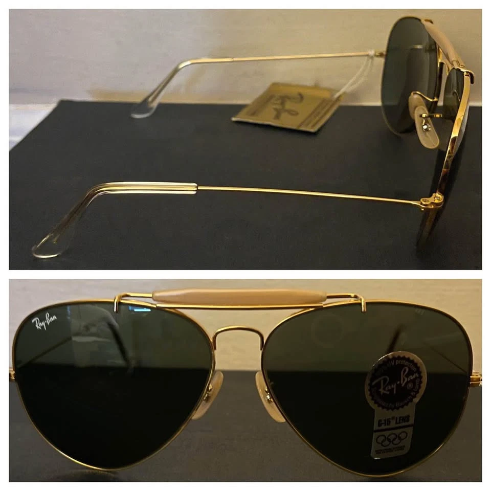 Listing is for a new, never used pair of RayBan Outdoorsmen Aviator sunglasses by Bausch & Lomb. Sunglass model #RB-3029-L2112-62/14. The authentic 'RB' etching is present. Filter category: 3. Comes with its Ray-Ban leather carrying case, a RayBan Registration card, and a cleaning cloth. Great addition to any one's collection.