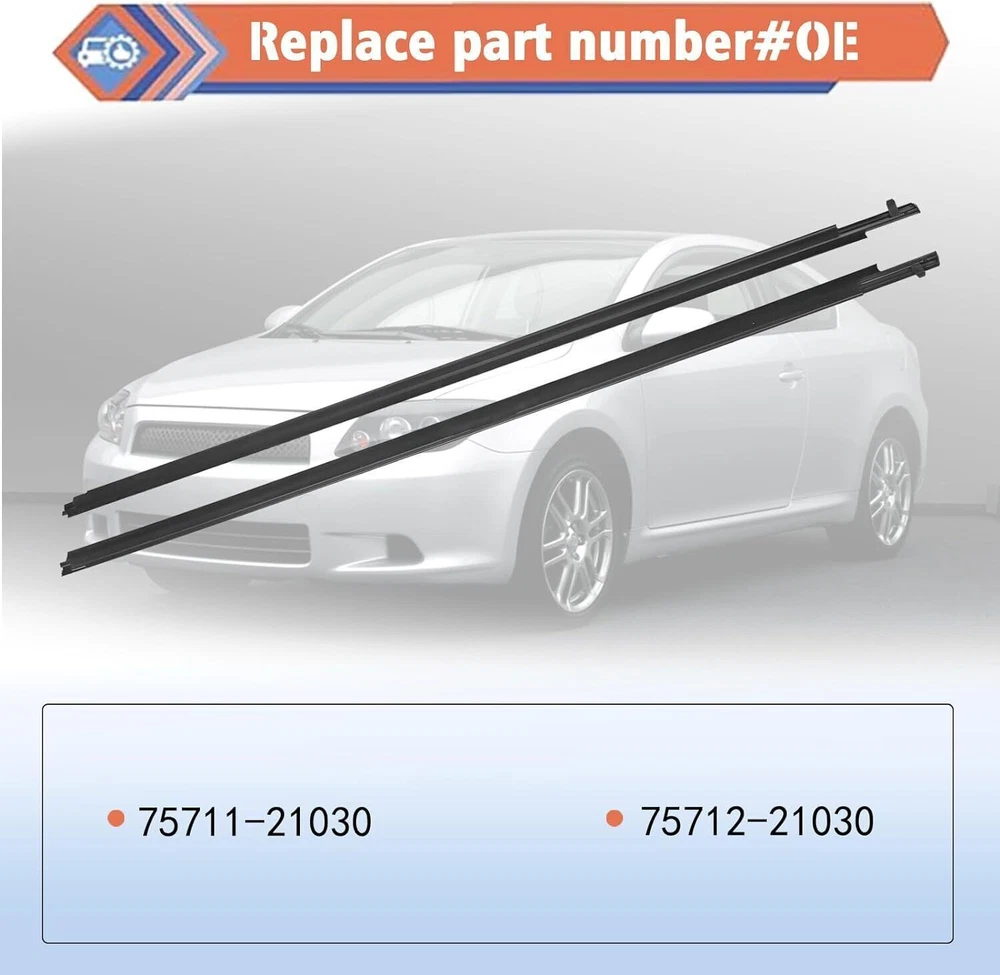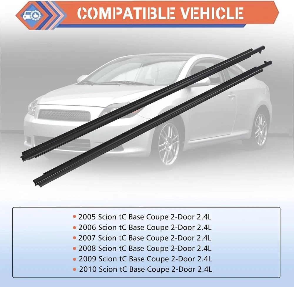 Outer Door Weather Window Rubber Seal Belt For Scion TC 2-Door 2.4L 2005-2010 Description: 【Replacement Part Number】 - #75711-21030, 75712-21030. Before ordering, please confirm compatibility and weather are suitable for your vehicle! 【Compatible Vehicle】 - This outer door window weatherstrip seal belt compatible with 2005-2010 Scion tC Base Coupe 2-Door 2.4L. 【High Quality】- Our outer door window glass weatherstrip made of high-performance material that are completely corrosion-resistant and dust-proof, wear-resistant, heat-resistant, strong impact resistance, and good overall performance. It’s equivalent parts fully comply with the original manufacturer's specifications and functions. 【DIRECT FIT & EASY TO INSTALL】 - This window molding trim weatherstrip is easy to install and directly to replace the old one. Saving your time and money by replacing it yourself. 【After-Sales Service】 - We have 1 year warranty, Worry-free Return and Refund Policy. Please Buy With Confidence! If you have any questions about our product, please contact us, we will deal with it as soon as possible! Specifications: Condition: New Part Number: 75711-21030, 75712-21030 Description: Moulding, Front Door Belt, RH & LH OEM Genuine Front Door Belt Moulding (Right & Left) Compatibility: For Scion TC 2005-2010 What You Get: 1 Set Outer Weatherstrip Door Belt Seal (Right & Left) Note: Make sure this item fits your car before purchasing. To ensure compatibility please match the part number or send us your VIN. (1)Products will be shipped from NJ/CA/GA/TN via USPS/UPS/Fedex/DHL. Shipping time is usually 2-7 business days (except Saturday and Sunday.) If you need the item urgently, please contact us for details before you buy. (2) Items wont be shipped to Puerto Rico(Please check your address before placing an order!) (3) Please allow 1-3mm differs due to manual measurement. Due to the different display and different light, the picture may not reflect the actual color of the item (4).If you has any problem, please feel free to contact us. (5).Please let us know before you send us the neutral/negative feedback that wont help to finish the issues. And I will definitely try my best to provide the best solutions which would meet your satisfactory. Payment Delivery details Terms of sales About us Contact us Payment 1.Payment must be received within 11 days after winning the item,UPI (Unpaid Item Case) will be filed automatically if buyers fail to make the payment in 11 days after item ends. 2.If you have difficulty paying for the item, please email us to cancel the order. Delivery details 1. Items will be sent out in 48 hours on payment received from Monday to Friday. Orders during weekends and holidays will be posted in the following working day. 2. Please make sure your shipping address and the order information is correct before placing an order. We will not be responsible for item loss due to wrong or unknown address. 3. Products will be shipped from NJ/CA via USPS/UPS/Fedex/DHL. Shipping time is usually 2-7 business days (except Saturday and Sunday.) If you need the item urgently, please contact us for details before you buy. Terms of sales 1.We accept 30 days return/refund guarantee. 2.If the item you received is faulty, damaged or incorrect, or any further problems, you can return it for replacement or refund, please contact our customer service on eBay within 30 days from item received. 3.For damaged items on arrival, please contact us first, sending us an email with a photo is preferred. We will offer solutions to such cases. Full refund or replacement will be guaranteed. About us Welcome to thebetterautopartszone We are specialized in auto accessories for more than 8 years and we have been exporting all kinds of items concerning the auto-parts that come with high quality & best price & excellent after-sales service! Thank you for shppping at our eBay store. Contact us 1.Please contact us first if you have any questions such as product damaged, item not arrived, wrong item sent and item does not work. All those issues would be solved immediately with your satisfactory! 2. Please contact us first before you left us a negative/neutral feedback and we are pleased to solve the problems you met. 3.Please feel free to contact us if you have any problems and we would always be here for your need . Brand TB Color Black Placement on Vehicle Left, Right, Front Manufacturer Part Number 75711-21030, 75712-21030 Manufacturer Warranty 1 Year Interchange Part Number 7571121030, 7571221030 UPC Does Not Apply Fitment Type Direct Replacement Other Part Number 75711-21030, 75712-21030 Category 2 Door Category 3 Exterior Trim Item Name Belt Molding Category 1 Body Hardware Description MOULDING, FRONT DOOR BELT, RH & LH Type Door Window Sweep Belt Molding Finish Gloss Features Easy Installation OE/OEM Part Number 7571121030, 7571221030