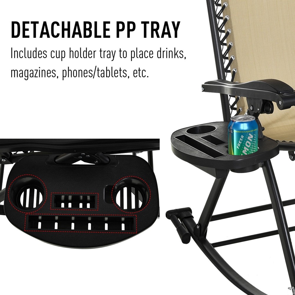 Outsunny Beige Zero Gravity Folding Rocking Lounge Chair with Cup Holder
