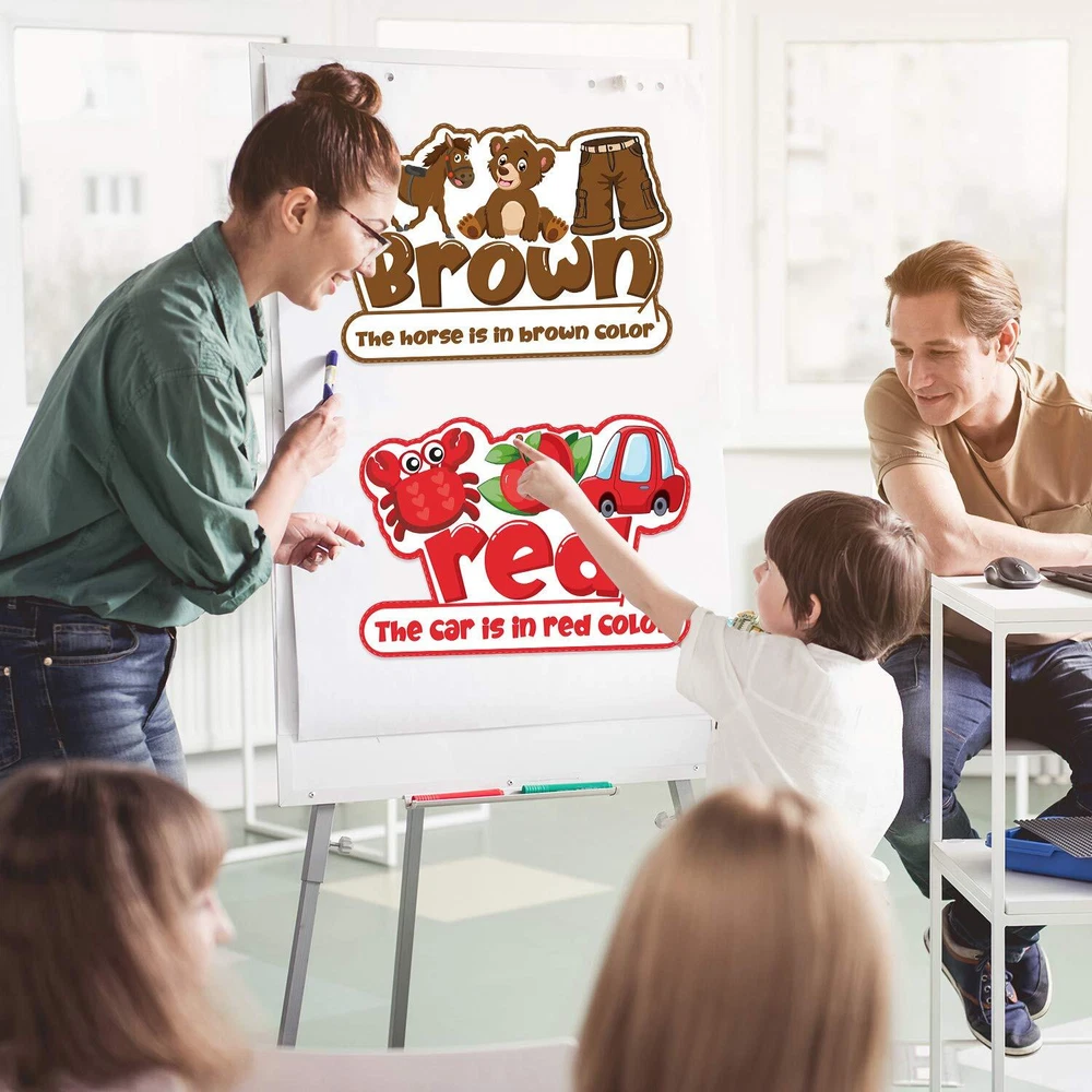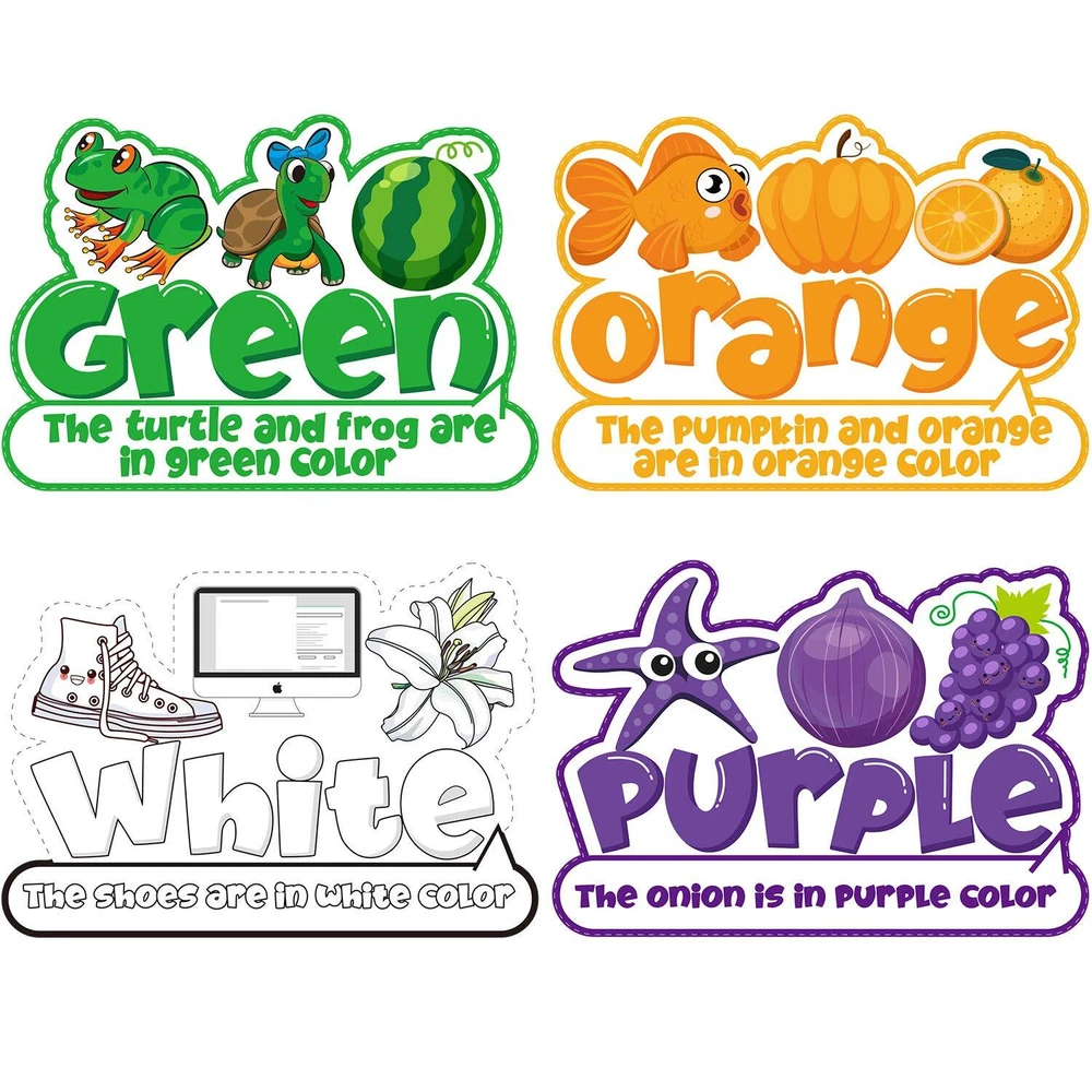 11 Pieces color cutouts color poster fruit animal vegetable word color bulletin board set with 100 pieces adhesive glue point dots for toddler kid learning color classroom decoration, 16.5 x 11.5 inch Adorable pattern word designs: Our color bulletin board set has 11 adorable animals and fruits and daily supplies designs like crab, cars, fish, pumpkin, orange, duck, slippers, pineapple, frog, turtle and so on. The colorful well designed pictures are very eye-catching and can easily arouse students' interests. Easy to recognize: Each color poster is 16.5 x 11.5 inches, and this size is big enough to be recognized, great for using as teaching tools to help kids, toddlers or students learn colors. The color names are well designed to draw children' attention. Compared with the congeneric product on the market, our products are larger in size and better in quality. Quality detailed contents: Our color cutouts are made of quality cardstock and coated with laminated PET film layer, designed with quality detailed contents, waterproof, reusable and durable for using as posters or cutouts. You can use dry erase pen to write and use tissue to wipe it off. Each poster comes with one sentence explanation to help kids, toddlers and students to learn colors and words. Wide uses: These big color poster pieces can be applied as educational resources guide or decorations in classroom, office, bulletin board. As teachers or parents, you can use them to stick to the wall, blackboard, bulletin board or other places where students can easily recognized. These color cutouts can be meaningful gifts for kids, fit for home schooling, kindergarten, preschool, etc.. Package includes: 11 x Color learning cutouts 100 x Adhesive dots Warm notice: These color learning posters are one-side printing. Texts in the posters cannot be as a trademark, our trademark is Outus. Bright and adorable designs: our color bulletin board set has 11 adorable animals and fruits and daily supplies designs, including crab, cars, fish, pumpkin, orange, duck, slippers, pineapple, frog, turtle, watermelon, butterfly, balloon, persimmon, shoes, computer, flower and so on; The colorful well designed pictures are very eye-catching and can easily arouse students' interests Larger size: each color poster for preschool classroom is 16.5 x 11.5 inches, and this size is big enough to be recognized, great for using as teaching tools to help kids, toddlers or students learn colors; The color names are well designed to draw children' attention; Compared with the congeneric product on the market, our products are larger in size and better in quality Waterproof, reusable and durable: our classroom colors posters are made of quality cardstock and coated with laminated PET film layer, designed with quality detailed contents, suitable for using as posters or cutouts; You can use dry erase pen to write and use tissue to wipe it off; Also, each poster comes with one sentence explanation to help kids, toddlers and students to learn colors and words Package content: 11 colors learning posters together with 100 pieces adhesive glue point dots; 11 Color learning posters mainly include contents related to red, orange, yellow, green, blue, purple, pink, brown, white, gray and black, matching with pattern and word explanation to deepen kids leaning memory Wide applications: these big color poster pieces can be applied as educational resources guide or decorations in classroom, office, bulletin board; As teachers or parents, you can use them to stick to the wall, blackboard, bulletin board or other places where students can easily recognized; These color cutouts can be meaningful gifts for kids, fit for home schooling, kindergarten, preschool, etc.