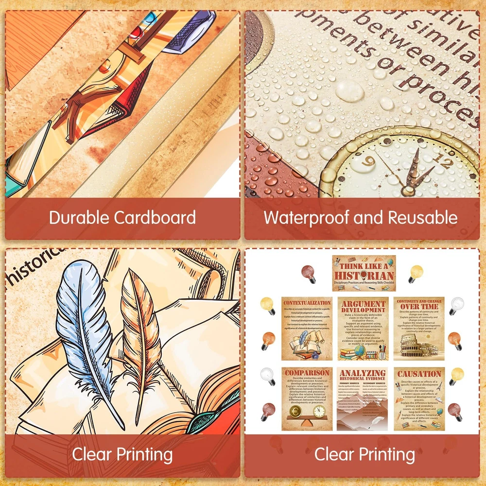 Features: History reasoning skills: How do you know what you know? Do you think like a historian? Use this checklist to help students decode the past and ask the right questions when examining historical evidence. Surprising gift: The social studies classroom supplies are suitable as a gift for lovers, classmates and friends, etc., suitable for scenes at home, bar, hallway, office, children's bedroom, home and office decoration, also suitable for Thanksgiving, birthday, Christmas, Children's Day, party favors. Specifications: Material: cardboard Color: as shown in the picture Size: as shown in the picture Package includes: 1 x Title poster 6 x Thinking posters 40 x Light bulb cutouts in 3 colors Notes: Manual measurement, please allow slight errors on size. The color may exist a slight difference due to different screen displays. The words printed on the product are not as trademark or brands, just for decoration, our brand is Outus. What Can You Get: you will get 47 pieces classroom bulletin board decoration including 1 title poster, 6 thinking poster and 40 light bulb cutouts, these cards are bright and colorful, which will be a big hit for your classroom; There are glue points provided for you to stick science cutouts and posters Nice Decorations: the thinking bulletin board posters are a nice solution for increasing students' curiosity about the world and stimulating a positive attitude and creative imagination; The thinking wall decorations are easy to show the thinking to solve the problem, providing a delightful visual reference for learners Reliable Material: our historical thinking bulletin board set is made of cardboard, which is sturdy and durable, clear printing, not easy to fade, colors bright, easy to catch the eyes, thinking poster for classroom also can be applied to explore thinking knowledge Novelty Design: the think like a historian posters are designed with steps in thinking about a problem, 6 parts such as "CONTEXTUALIZATION" "ARGUMENT DEVELOPMENT" and "COMPARISON" etc.; Thinking bulletin board for classroom can make your classroom or room full of learning atmosphere Wide Application: the bulletin board decoration with light bulb cutouts is suitable for creating novelty classroom projects on bulletin boards, windows, chalkboards, and hallways; These social studies wall decorations can be applied as decorations in classroom, office, party, etc