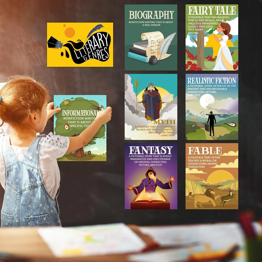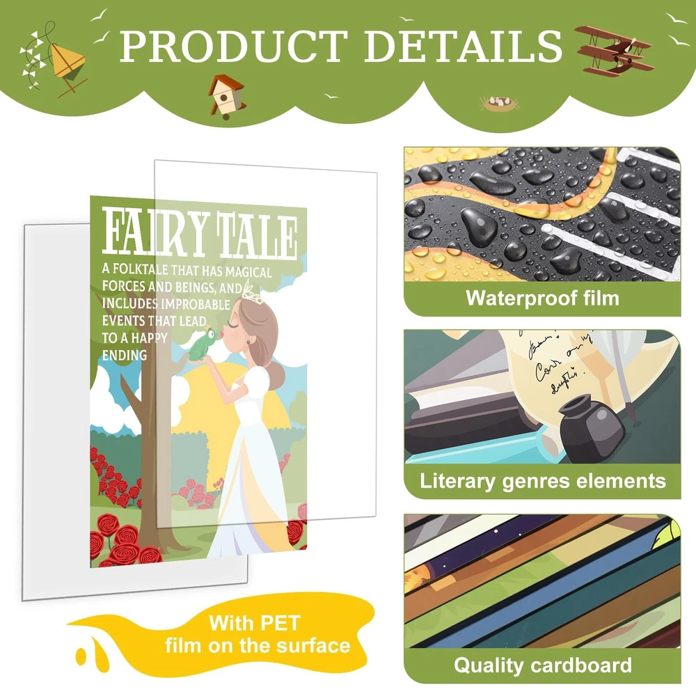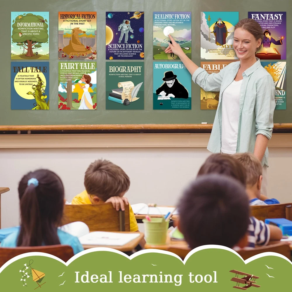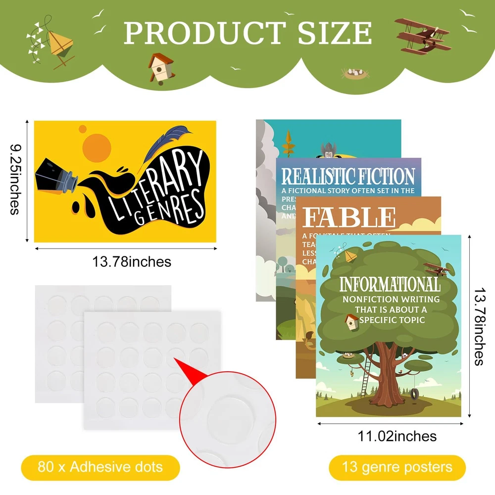 Educational literary genres bulletin board set features: Literary genres design: The educational literary genres bulletin board adopts bright colors and reading literature genre, and 13 style of literary genres posters with different patterns can attract students to generate interest in reading. Ideal classroom decor: Genre reading classroom decorations can be applied as a learning tool guide to enhance student interest in reading and create a bright classroom atmosphere. Specifications: Color: as shown Size: Poster: about 11.02 x 13.78 inches/ 28 x 35 cm Banner: about 13.78 x 9.25 inches/ 35 x 23.5 cm Package includes: 1 x Literary genres banner 13 x Literary genres posters 80 x Adhesive dots Notes: Manual measurement, please allow slight errors on size. The color may exist a slight difference due to different screen displays. Literary Genres Posters with Different Elements of Style: literature classroom decorations includes a literary genres banner and 13 genre posters; The literary genres bulletin board includes autobiography, historical fiction, mystery, tall tale, legend, biography, realistic fiction, fable, informational, science, fairy tale, fantasy, myth, which can meet the needs of classroom wall decor and student learning Ideal Classroom Decoration: genre posters for classroom can be applied as a learning tool guide to enhance children's interest in reading, and the literary genres bulletin board set can also be classroom blackboard and wall decoration to attract children's attention Easy to Use: educational literary genres classroom decorations come with 80 pieces adhesive dots, these adhesive dots will help you stick the literary genres poster set wherever you want, bright literary genres poster set will provide a better visual experience Literature Posters for High School Quality Material: genre reading posters are made of quality cardboard, printed on one side and covered with a waterproof film, waterproof, tear resistant and educational literary genre posters for high school can be applied in multiple use Educational Literary Genres Posters for High School Suitable Size: the size of reading literary genres posters is about 11.02 x 13.78 inches, and literary genres banner is about 13.78 x 9.25 inches; The size is large and the pattern is clear and can be seen even from a distance; Vintage genre reading bulletin board set can help children better read the contents of the posters