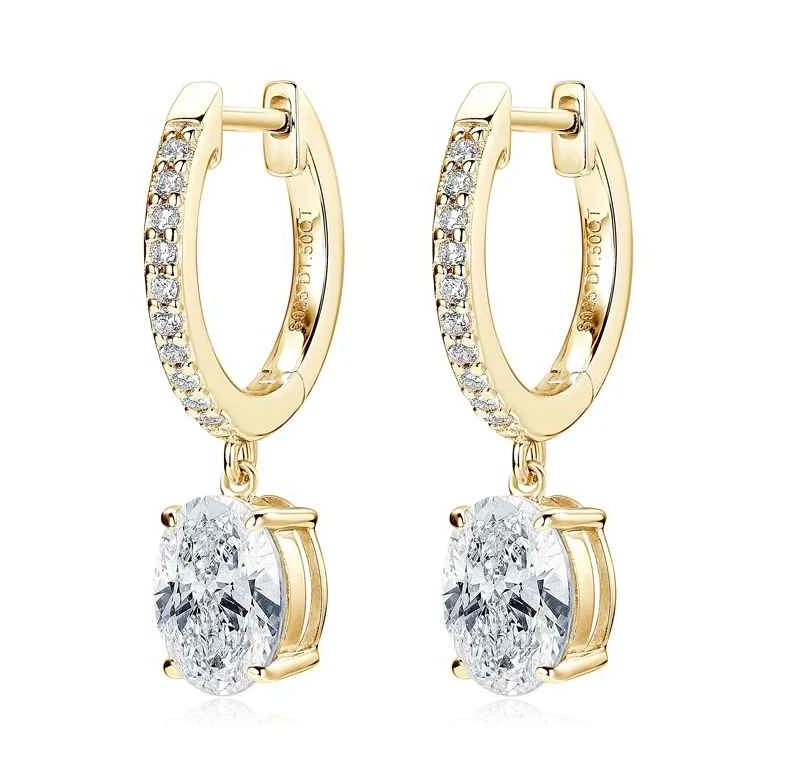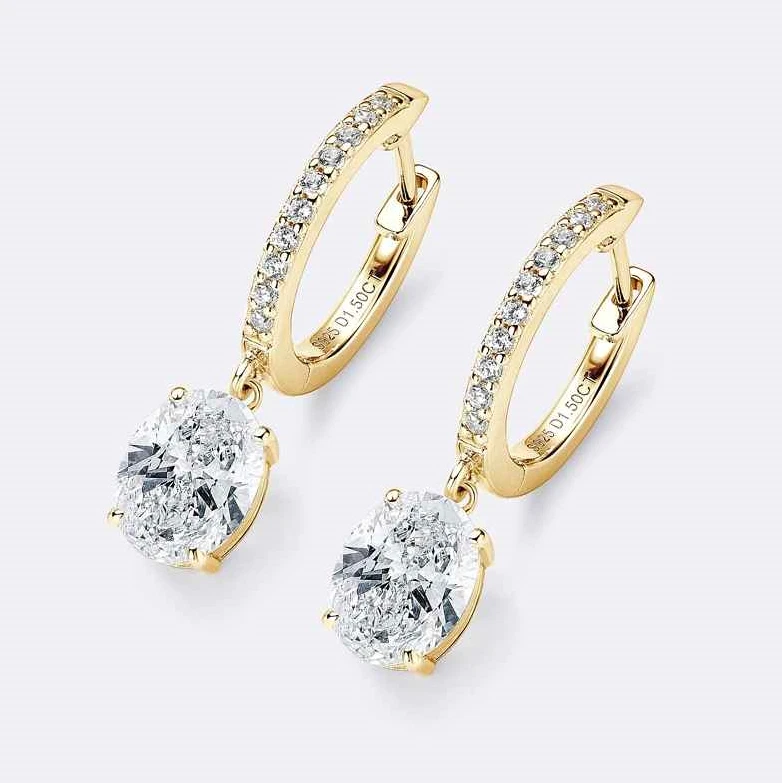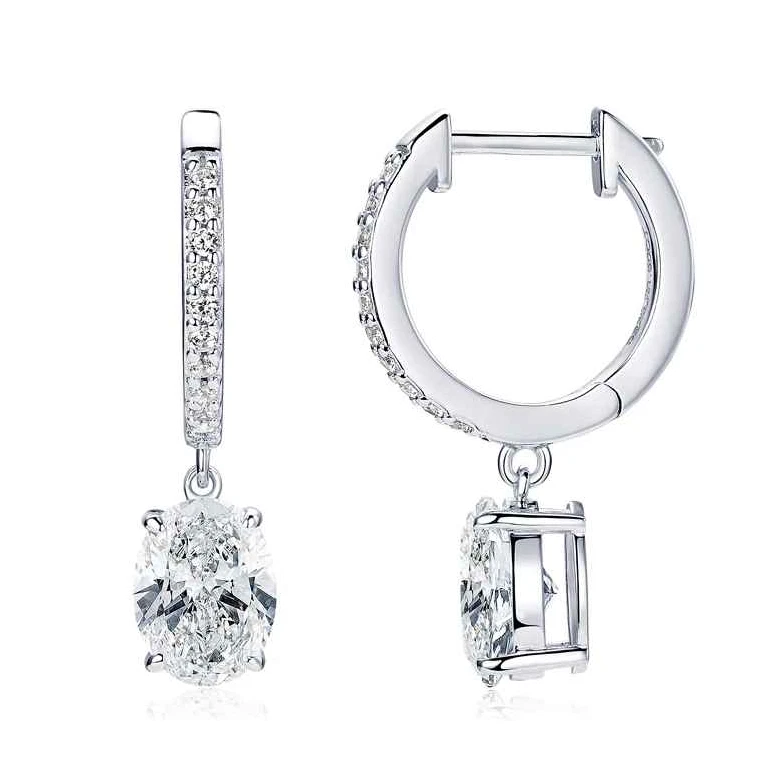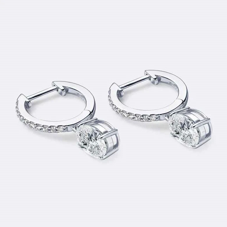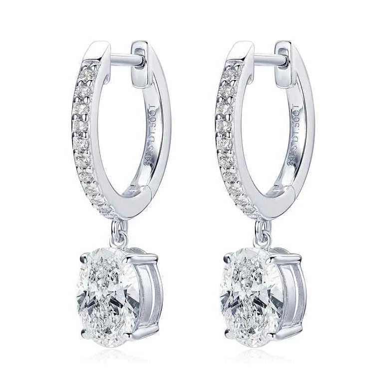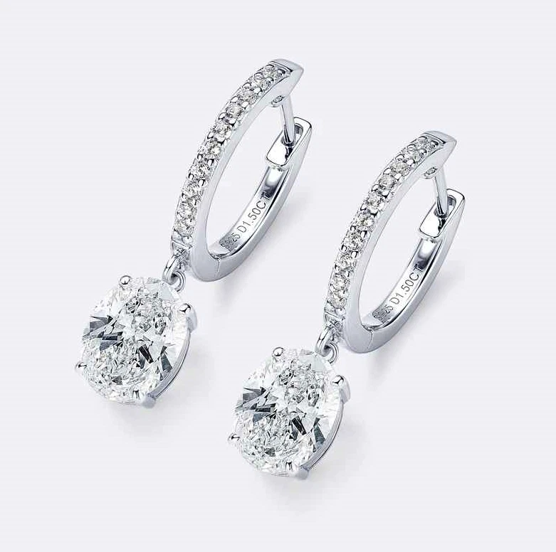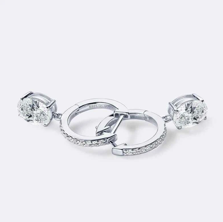 Elevate your Christmas jewelry collection with these stunning Oval Cut 3 Carat GRA Moissanite Dangle Hoop Earrings. Crafted with high-quality Sterling Silver, these earrings feature a solitaire setting style with a clip-on closure for easy wear. The earrings are adorned with two round-shaped, lab-created Moissanite gemstones that have a total carat weight of 3ct. The earrings are certified by GRA and come with a beautiful Christmas theme, making them an ideal gift for your loved ones. These earrings are perfect for anyone who loves beauty and elegance. The earrings are designed to be worn on the cartilage and lobe area, and their excellent cut grade ensures maximum sparkle. These earrings are a must-have for anyone who wants to add a touch of sophistication to their Christmas outfit.