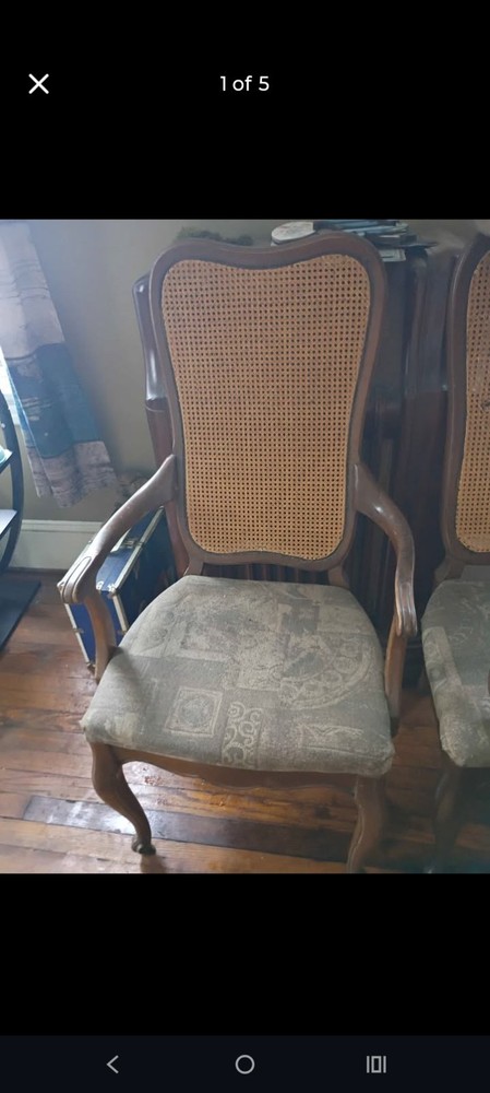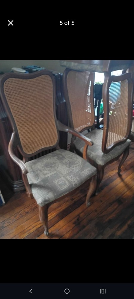 Oval Wood Dining Table Set with 6 Brown Cane Back Chairs for Dining Room