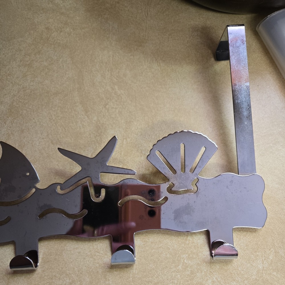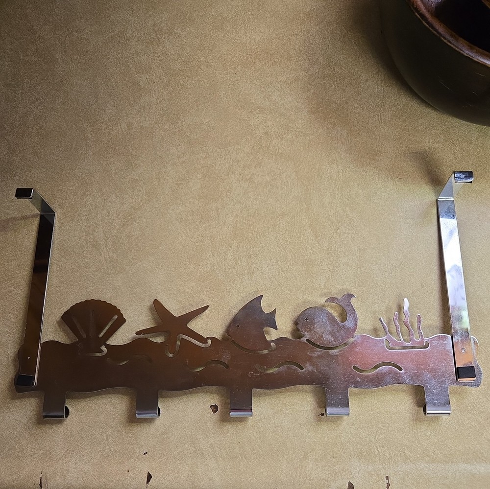 Number of Hooks: 5 Item Height: 5" Color: Silver Item Width: 2.25" Type: Over-the-Door Hook Style: Modern Item Length: 13" Mounting: Over-the-Door Hook Style: Traditional Features: Easy Installation, Heavy Duty, Anti Slip Brand: Unbranded Material: Metal Model: Under the Sea Theme: Modern Item Weight: 10 oz MPN: does not apply Department: Adults Size: 5 Hook