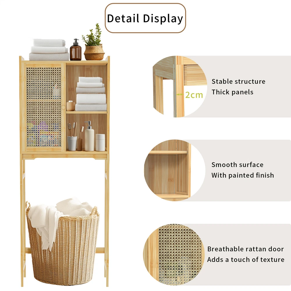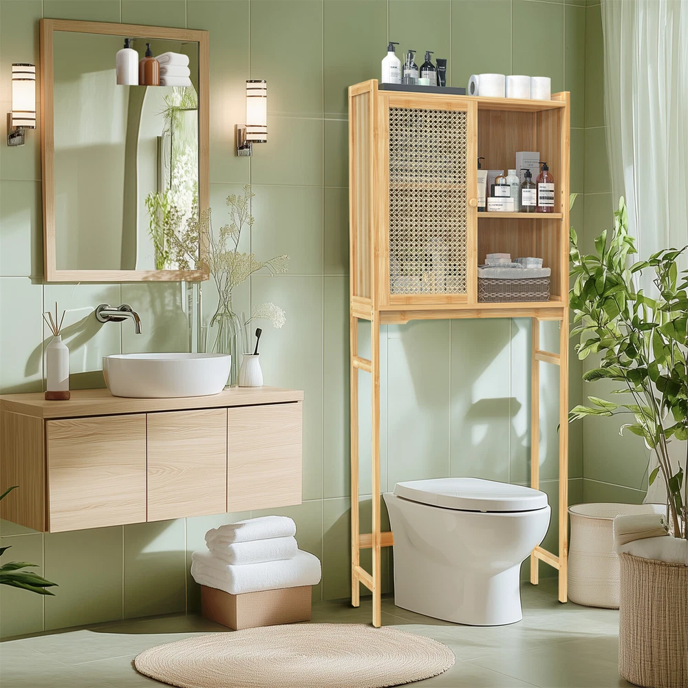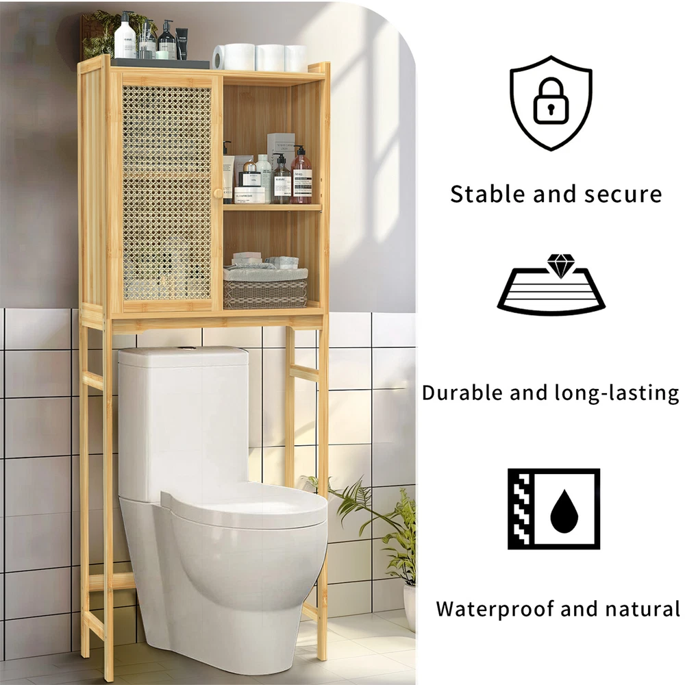 Over The Toilet Rack Bamboo Storage Cabinet Bathroom Shelf Organizer Solid Wood Over The Toilet Rack Bamboo Storage Cabinet Bathroom Shelf Organizer Solid Wood US SELLER, FAST SHIPPING! Features: The natural wood finish seamlessly blends with any styles, adds a touch of warmth. Two-tier shelves for organizing toiletries and other necessities, maximizes storage. With two shelves for organizing toilet paper, towels, toiletries, and cleaning supplies. Having this storage over the toilet allows for easy access to frequently used items. Not only provides practical storage but also creates a light and airy look in your home. With a woven door design, strong magnet lock to hold door shut, preventing dust. Crafted of renewable bamboo, high tensile strength, extremely robust, built to last. The anti-tip design ensures stability by holding the rack steady against the walls. Measuring at 23.62’’ L, 10.15’’ W, 61.22’’ H, easily fits over most standard toilet sizes. Its sleek natural wood finish has a warm, organic look, enhance the overall beauty. Over-the-toilet storage units, making it an ideal option for renters or homeowners. The package includes hardware and clear instructions, easily and quickly set it up. Specifications: Type: Toilet Storage Cabinet Style: Modern/ Contemporary Model: Toilet Storage Shape: Rectangle Mounting: Free Standing Room: Bathroom Toilet, Washing Machine Feature: With Shelves, Multifunctional Materials: Bamboo + ABS Plastic + MDF Board Color: Natural Wood Net Weight: 12.5kg/ 27.56 lbs Product Dimension: L * W * H total 60x25.8x155.5cm/ 23.62x10.15x61.22 inch Package Includes: 1 x Over-The-Toilet Storage 1 x Instructions Payment Delivery details Terms of sales About us Contact us Payment 1.We accept payment by credit card, paypal, payoneer. 2.Upon on payment, please confirm your shipping address. Delivery details 1. All of our products are brand new. 2. All Mirror have passed drop test over 1.2m and quality inspection, ensures the mirror was shipped in good condition before shipment. Terms of sales 1.We are located in NJ, CA ,all the items will be shipped via USPS, UPS Ground, Fedex Ground with tracking number provided. 2. We cannot ship to Alaska, Hawaii & Puerto Rico Addresses. About us About Wisfor At Wisfor,we provide high quality LED bathroom mirrors,focus on the development and innovation of mirrorsand our company has over 10 years backed with professional service experience, and exports products to more than 130 countries around the world. There are severial series of mirrors, Bathroom Mirror with Light, RGB Frontlit &Backlit LED Mirror, Metal Frame Mirror,Decorative Wall Mirror,ect. And many shapes, rectangle, round, oval, and so on.We always focus on the development and innovation of high-quality LED bathroom vanity mirror, to meet your demand and to elevate personality and design tastes. Contact us 1. If you are satisfied with the transaction could you pls leave us a positive feedback 5-star that we will be appreciated. 2. Normally your email would get replied within 24 hours (Business Hours) and your issue will be followed up carefully till we 've reached an agreement. 3. If you have any questions or suggestions before opening a case or dispute ,or leaving any neutral or negative feedback, please contact us first,we will try our best to resolve your problem. Brand UNHO Type Toilet Storage Cabinet Material Bamboo + ABS Plastic + MDF Board Number of Shelves 4 Mounting Free Standing Item Length 23.62 inch Item Width 10.15 inch Item Height 61.22 inch Item Weight 27.56 lbs Door Style Slab Assembly Required Yes Item Depth 25.8 cm Department Adults Model Toilet Storage MPN mkx0CM9S2 Room Bathroom Number of Doors 1 Features Adjustable Shelves Color Natural Wood