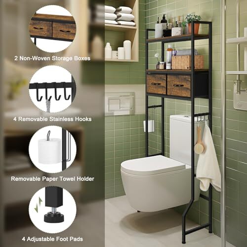 Return Policy Fast Delivery Trusted seller Over The Toilet Storage Cabinet with Fabric Drawers Bathroom Storage Over Toilet Fit Most Toilets, Rustic Brown Product Description 【Practical Drawer Design】 Soft fabric drawer with reinforced base. Easily pull the handle of the above toilet storage to conceal clutter. 2 large drawers can organize and hide your bathroom supplies safely and privately. The detachable drawer folds flat for easy storage when not in use. 【Toilet Paper Holder & Hooks】 Our toilet storage rack also offers 4 detachable stainless steel hooks, and a toilet paper holder , this over the toilet shelf provides abundant space for storing bathroom essentials like towels, toiletries, perfume, shaving foam, brush, shampoo, and potted plants. 【Not Just A Toilet Rack】 Toilet shelf dimensions: 26 × 7.8 ×63.5 inches. It can be used as a bathroom shelf over toilet to organize toiletries and shower items. In addition, it can be used as a storage organizer for the laundry room, balcony, bedroom, kitchen, or living room to help you organize and store your daily needs. 【Reliable Construction】 Stability is key, and this over the toilet Storage cabinet prioritizes it with a widened bottom design and anti-falling device, ensuring a secure and balanced structure. When the ground is uneven, you can adjust the feet to keep the over toilet storage rack stable and protect the floor from scratches. 【Easy Installation】Use multifunctional bathroom organization without the worry of complicated installation. Clear and concise instructions, coupled with the included tools, make the installation process straightforward, even for those less inclined toward DIY projects. Shipping Returns Payment Shipping Shipping is FREE to all addresses other than APO/PO boxes in the lower 48 states. All our stock ships from US-based warehouses. Shipped via USPS or UPS (depending on location and package weight) Unless stated otherwise, all orders will ship within 24-72 hours of your payment being processed. Check our feedback to see the great reviews of FAST shipping we offer. Returns Seller does not accept returns Payment We currently accept payment via eBay managed payments only. Once payment is cleared, we will dispatch your shipment within 1-3 business days. Please refer to the "Shipping" tab for more information regarding shipping speed to your destination.