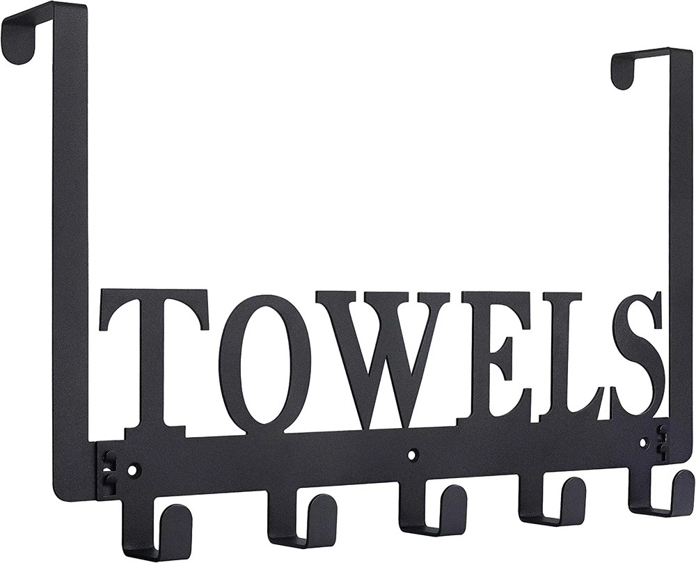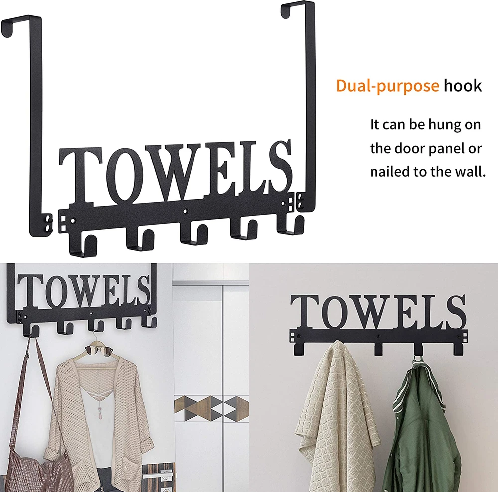 High Manganese Steel 【Two kinds of usage】: The towel rack is detachable. It can be assembled to hang on a door, or it can be disassembled and nailed to a wall. Two removable rods that can be removed in a very simple way without the need for any tools. 【Occasions】: Towel racks are suitable for bathrooms, kitchens, cupboards, living rooms, bedrooms, swimming pools, etc. Towel racks are great for hanging towels, bathrobes, coats, beach towels, bags, umbrellas, and kitchenware. 【Material】: Made of high quality high manganese steel, with black sand blasting, feel smooth, carving carefully, durable, waterproof and rustproof. 【Package】: 1 x Door mount towel rack, 3 x Rectangle sponge pads, 4 x screw anchors, 4 x screws. As shown in the picture. 【Size】: 15inchL x 1.7inchD x 10.3inchH (38cmL x 4.5cmD x 26.3cmH). For standard doors with a thickness of 1.7 inches (4.5 cm). To give you a good experience, we recommend hanging towel racks on doors between 1.4 and 1.7 inches (3.5-4.5cm) thick. Features: ❤The towel rack is both elegant and practical, saving space and decorating a room. ❤The towel rack is easy to install and can be hung on the door without the help of other tools. ❤The five hooks on the towel rack are very sturdy and can be used to hang heavy objects. ❤The towel rack is high quality, practical and reliable. You can buy it at ease. Product Information: Material: High manganese steel Dimensions: 15"L x 1.7"D x 10.3"H Color: Black Package include: 1 X Door mount towel rack 3 X Rectangle sponge pads 4 X screws 4 X screw anchors Hang on the door : 1.Assemble the towel racks and hang them on the door, making sure there is enough space above the door to fit a coin (about 1.5 mm). In addition, doors should be between 1.4-1.7 inches (3.5-4.5 cm) thick. Please check the product size before purchasing. 2.Secure the towel rack to the door with three Rectangle sponge pads to prevent it from shaking when opening and closing the door. We do not recommend hanging towel racks on glass doors. Nails on the wall : 1.Choose a spot and mark the three holes with a pen. Then make the hole. 2.Insert the supplied screw anchor and strike firmly with a hammer. 3.Fix the towel rack and screw in the three screws.