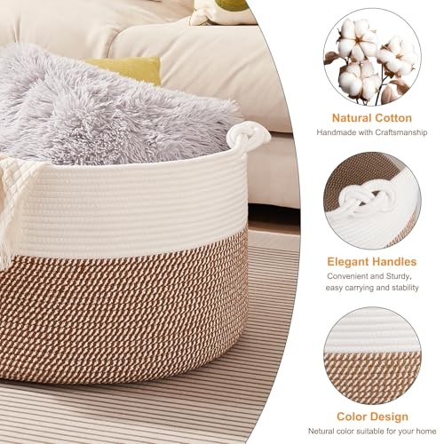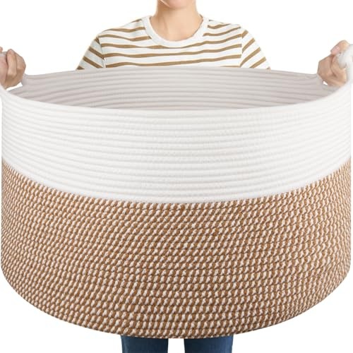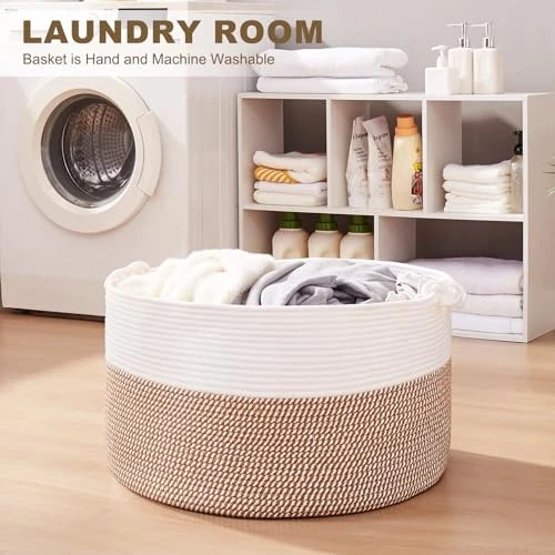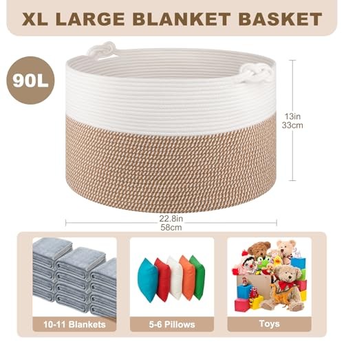 Return Policy Fast Delivery Trusted seller Large Blanket Storage Basket for Living Room, 22.8" x 22.8" x 13" Woven Cotton Rope Basket with Handles, Baby Toy Storage, Laundry Hamper for Clothes, Pillows, Towels-Yellow and White Product Description XXL Large Basket: Measuring 22.8"L x 22.8"W x13"H, Big and deep enough to store most home bulky items, such as pillows, blankets comforters, duvets, cushions, and dog toys, winter clothing, laundry clothes and more Soft Round Basket: The toy storage basket is made of natural cotton rope which is soft and durable, safe for your kids and pets. Craft Woven Basket with Neutral tones/colors for home decor and storage Multifunctional Use Storage Basket: The big rope basket perfect for bedroom, living room, child's room, bathroom and laundry room. Helps you organize bath towels, extra bedding, pillows and other things Woven Basket with Handles: This laundry basket features two woven knot handles. The sturdy handles make it easy to carry, perfect for organizing children's belongings. With ample space,little ones can easily reach in and grab their favorite items to play with in the nursery Note: The blanket basket is foled for shipping. It will turn back to its elegant shape quickly by filling it with towels or blankets, and ironing is a great idea as well. Also, you can fold it into a flat shape for easy storage when not in use Shipping Returns Payment Shipping Shipping is FREE to all addresses other than APO/PO boxes in the lower 48 states. All our stock ships from US-based warehouses. Shipped via USPS or UPS (depending on location and package weight) Unless stated otherwise, all orders will ship within 24-72 hours of your payment being processed. Check our feedback to see the great reviews of FAST shipping we offer. Returns Seller does not accept returns Payment We currently accept payment via eBay managed payments only. Once payment is cleared, we will dispatch your shipment within 1-3 business days. Please refer to the "Shipping" tab for more information regarding shipping speed to your destination.