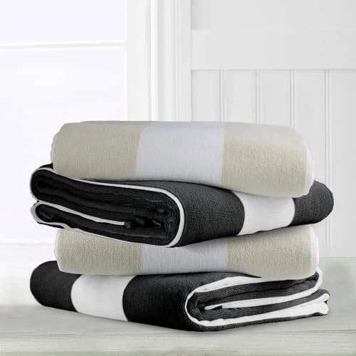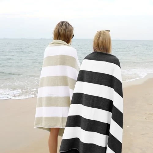 Oversized 40x72 Inch Cotton Beach Towel with Striped Chiffon