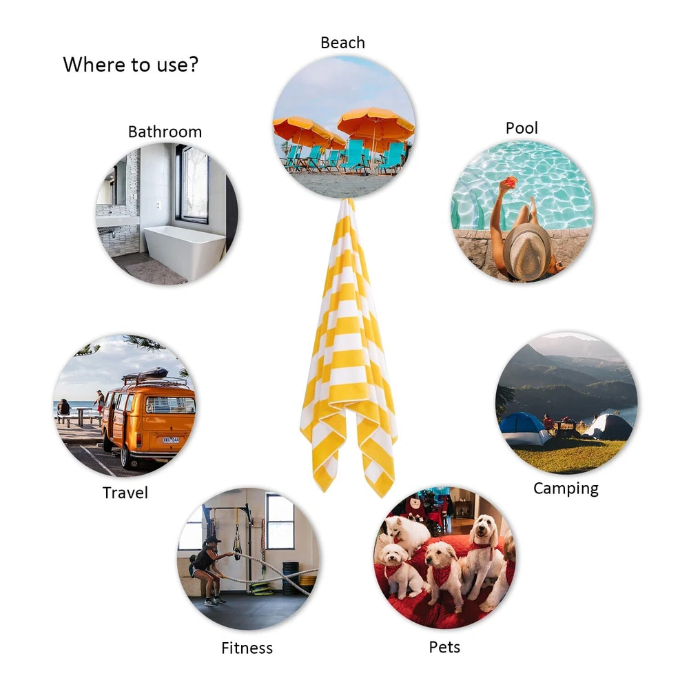 Large Oversized Beach Towel - Big Cotton 36 x 70 Inch Striped Pool Towel, Large Cabana Soft Swimming Towel for Adult Men Women,Yellow 100% COTTON BEACH TOWEL- Extra large beach towels oversized made of 100% American combed cotton,and the advanced technology in textile process makes the yellow beach towel no lint; DO NOT FADE - This classic cabana striped big beach towels oversized in multiple colors which won't fade with washings; ULTRA ABSORBENT - Big adult beach towel is ultra-absorbent and soft against to help get you dry quickly on the beach or poolside as a vacation accessory or treat yourself to spa quality towels at home; OVERSIZED BEACH TOWELS FOR ADULTS - XL beach towel for men and women which size is 36 x 70 inches, it's allow to use anywhere you desire with comfort and space,it can be beach towel yellow,mens beach towel,womens beach towel,pool towel oversized,bath towels,swim towel,shower towels,camping towel,travel towel and more uses as you need; EASY CARE - This soft beach towel large is machine washable,wash cold on a gentle cycle,tumble dry low,do not bleach. Features: Oversized : --Cotton beach towels for adults,36 x 70 inches, This classic cabana striped Extra Large Beach Towels Oversized in multiple colors enough for adults,women and mens beach towels for adults No lint : -- 100% American combed cotton use advanced technology in textile process No Fading : -- nice dye and special process to fix beach towel cotton color Multiple Uses: -- Can be used for gym, the beach, camping, outdoor, pool towels oversized, Plush beach towels funny , Cabana stripe beach towel,xl Oversized beach towels for adults, fluffy womens beach towel travle, summer towel, bath towel,swim towel,Big beach towel for men Size: 36 x 70inches Package: 1 beach towel in pack Shipping We offer FREE shipping on all orders! We ship within Three business days of payment, usually sooner. We use a selection of shipping services such as UPS, FedEx, USPS etc. We only ship to the lower 48 states, no APO/FPO addresses or PO Boxes allowed. Local pickups and combined shipping options are not provided at this time. Return You can return a product for up to 30 days from the date you purchased it. Any product you return must be in the same condition you received it and in the original packaging. Please keep the receipt. Payment We accept payment by any of the following methods: PayPal Please pay as soon as possible after winning an auction, as that will allow us to post your item to you sooner! Feedback Customer satisfaction is very important to us. If you have any problem with your order, please contact us and we will do our best to make you satisfied. Contact Us If you have any queries, please contact us via ebay. We usually respond within 24 hours on weekdays. Please visit our eBay store to check out other items for sale! Thank you for shopping at our store.