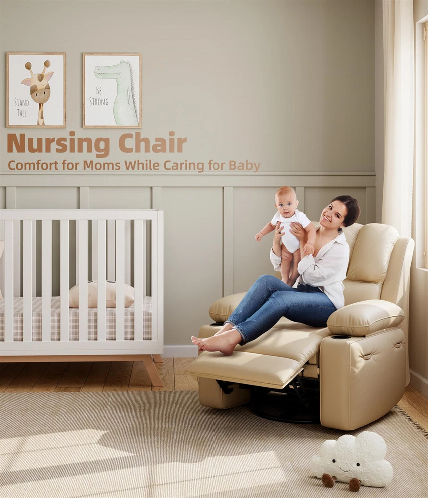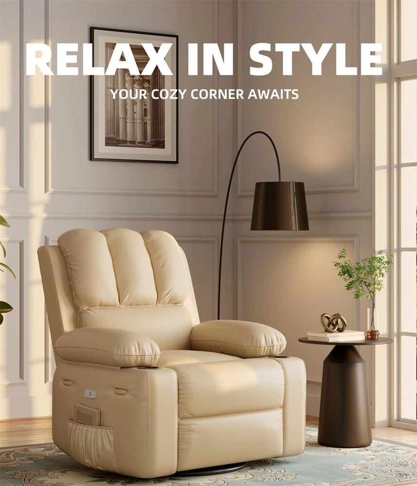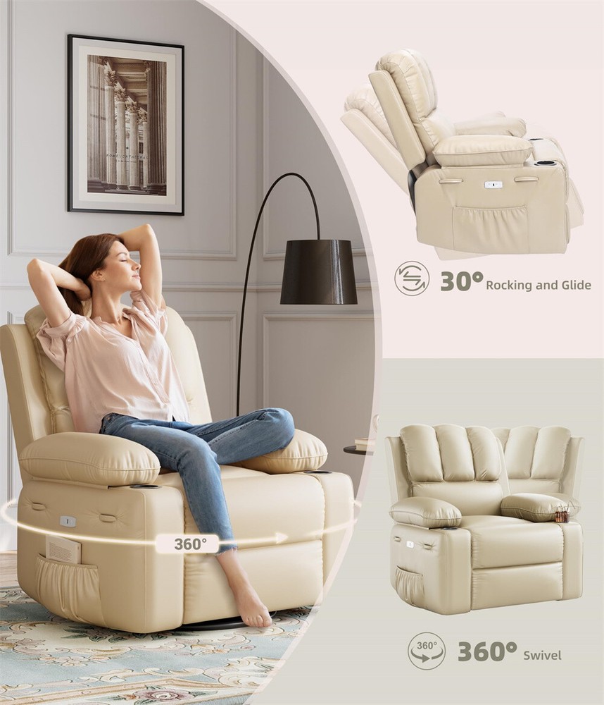 Oversized Electric Recliner Chair with Massage Heat and 360° Swivel Remote