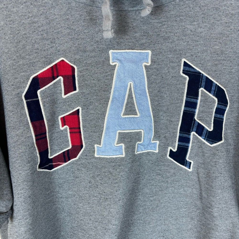 Gap Gray Short Sleeve Red Blue Plaid Logo Pullover tshirt Size Large with drawstring waist in good condition no holes or stains as shown in pics has been washed before listing refer to pics before purchasing as all defects are shown